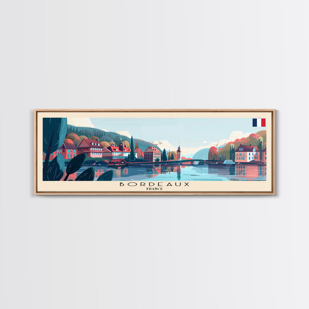 Bordeaux France Panoramic Travel Poster, Framed Canvas Print or Metal Wall Art, Travel Art, Home Decor, Panoramic Painting, Midcentury Art