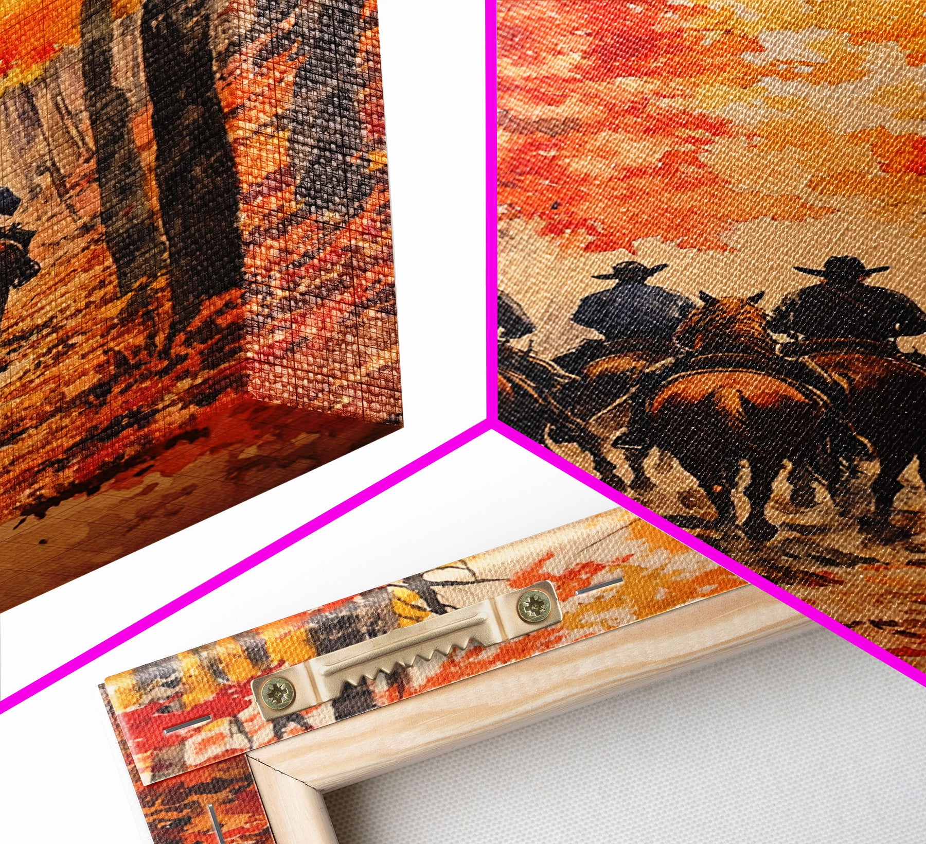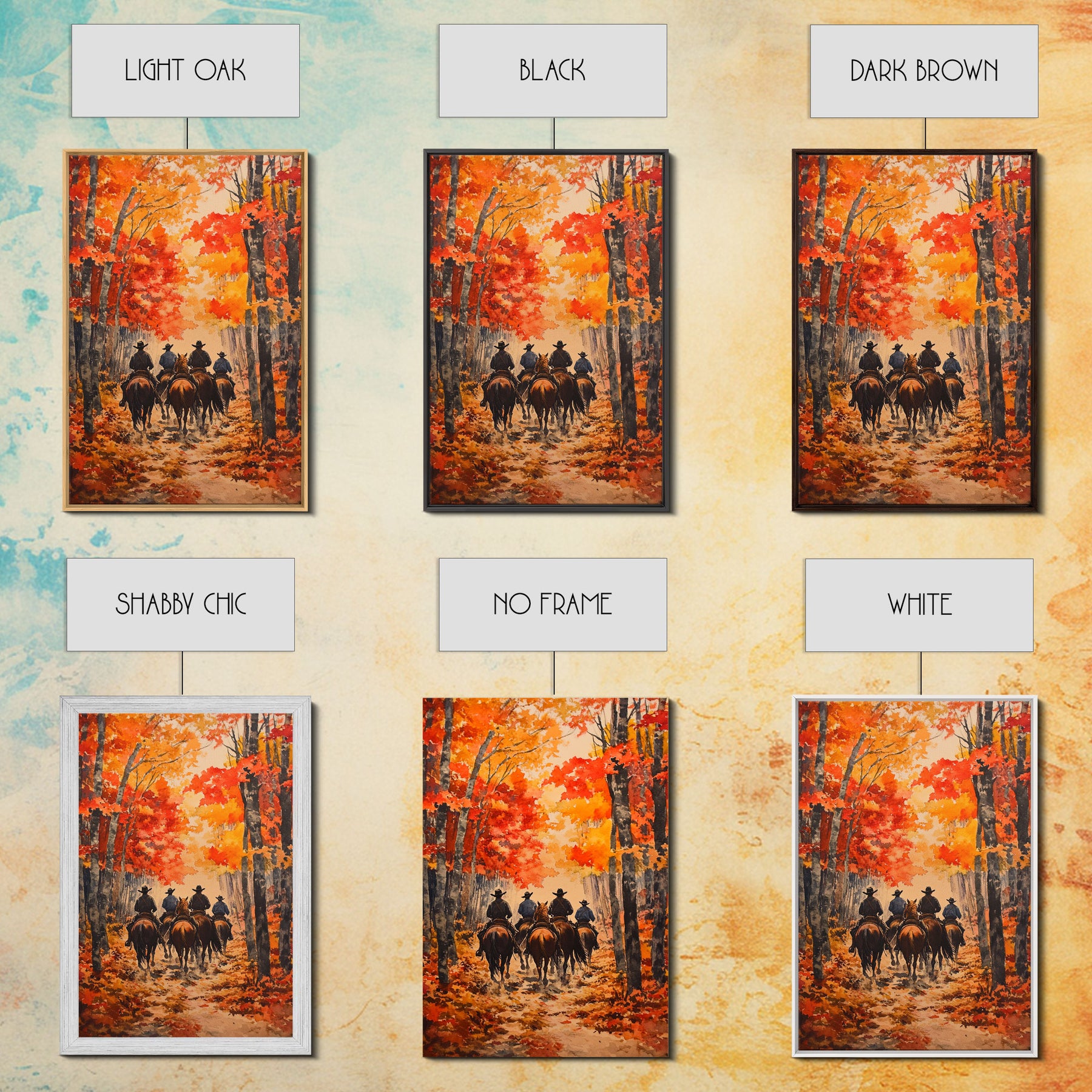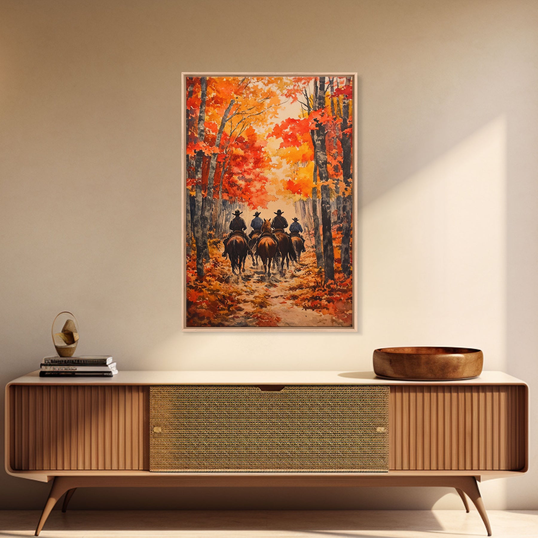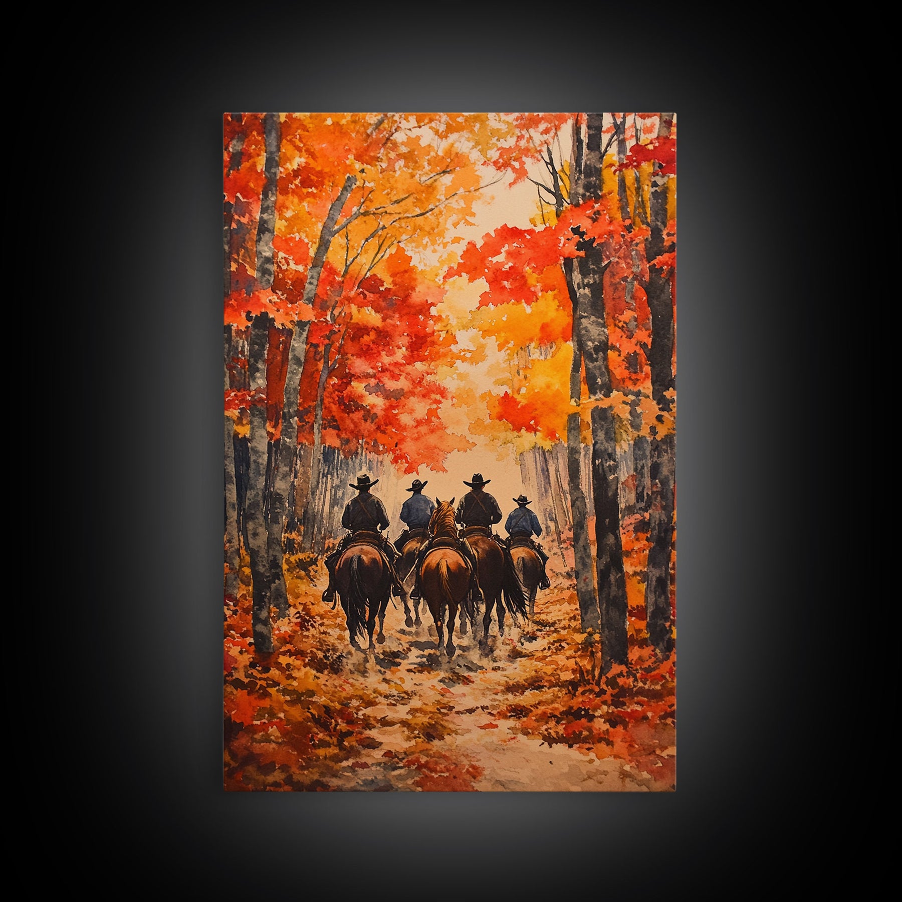 Cowboys Riding Into Town On Thanksgiving, Western Fall Decor, Framed Canvas Print, Autumn Outdoor Decor, Christmas poster
