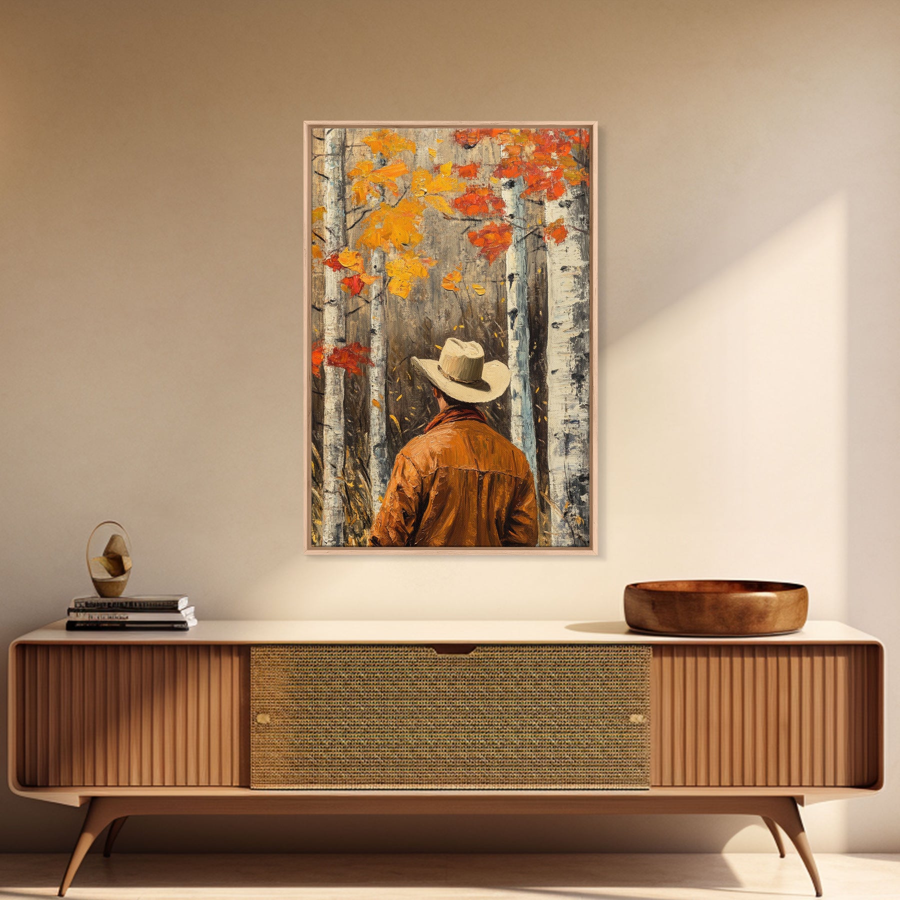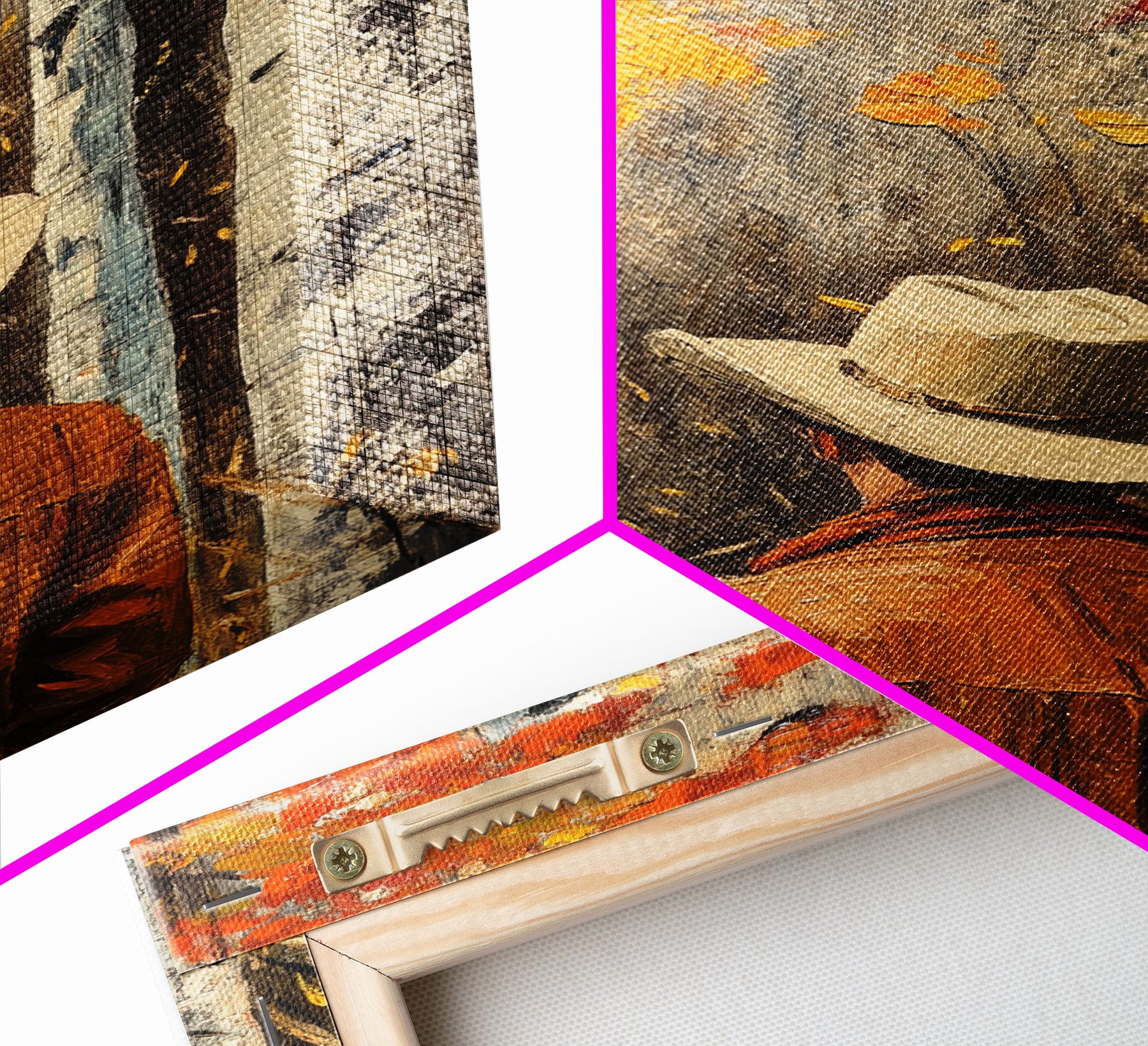 Cowboy in Autumn Forest Canvas Print with Vibrant Fall Colors, Western Art, Fall Wall Art, Seasonal Decor, Perfect Gift Idea, Canvas Print