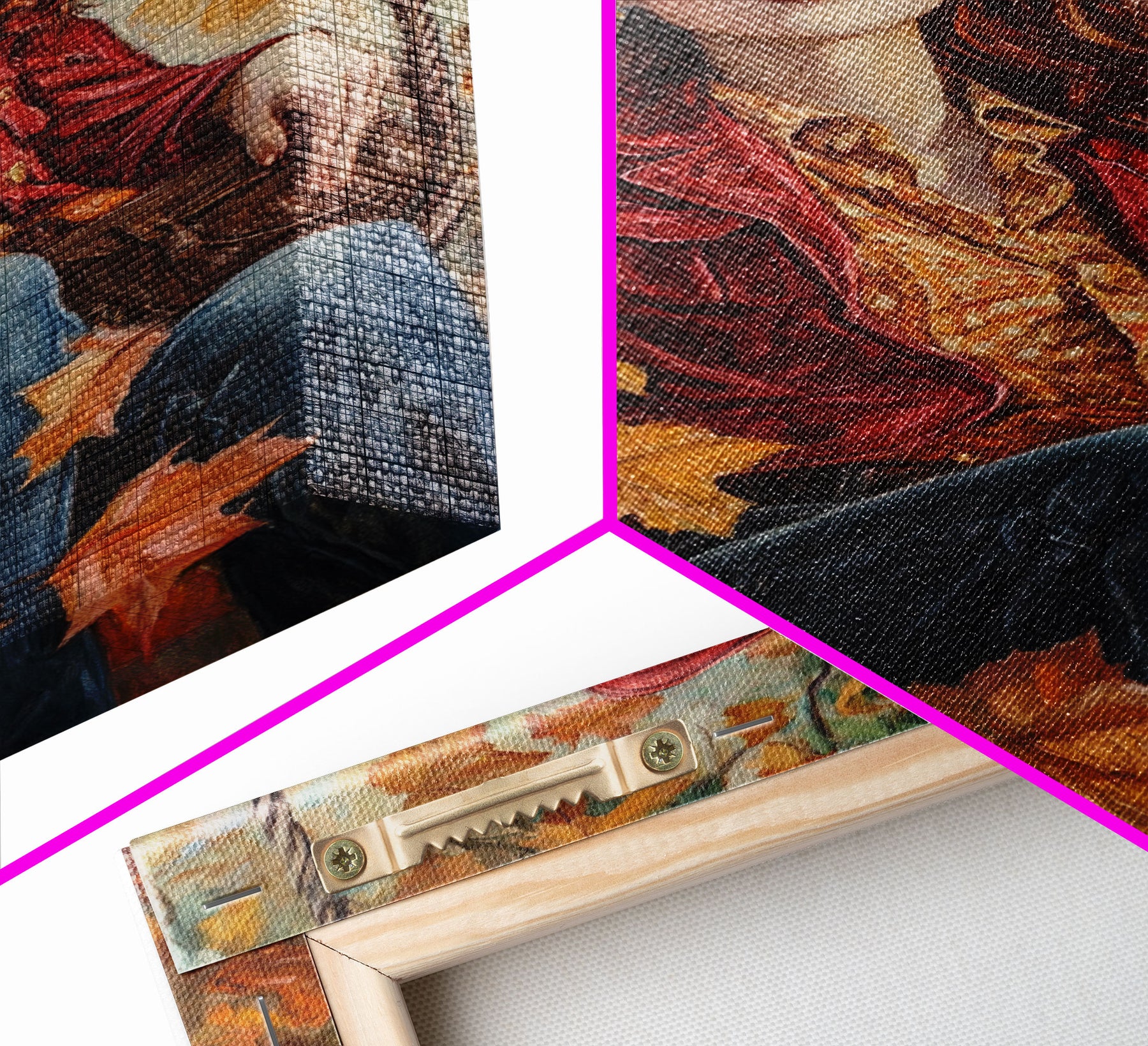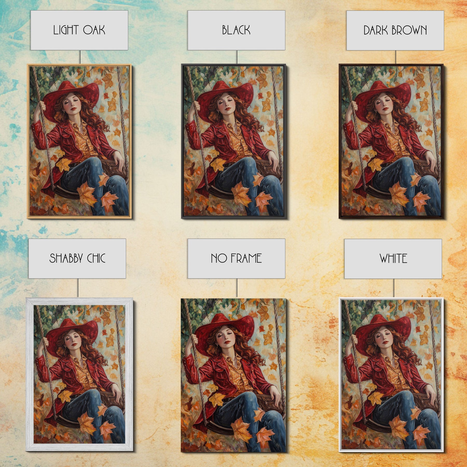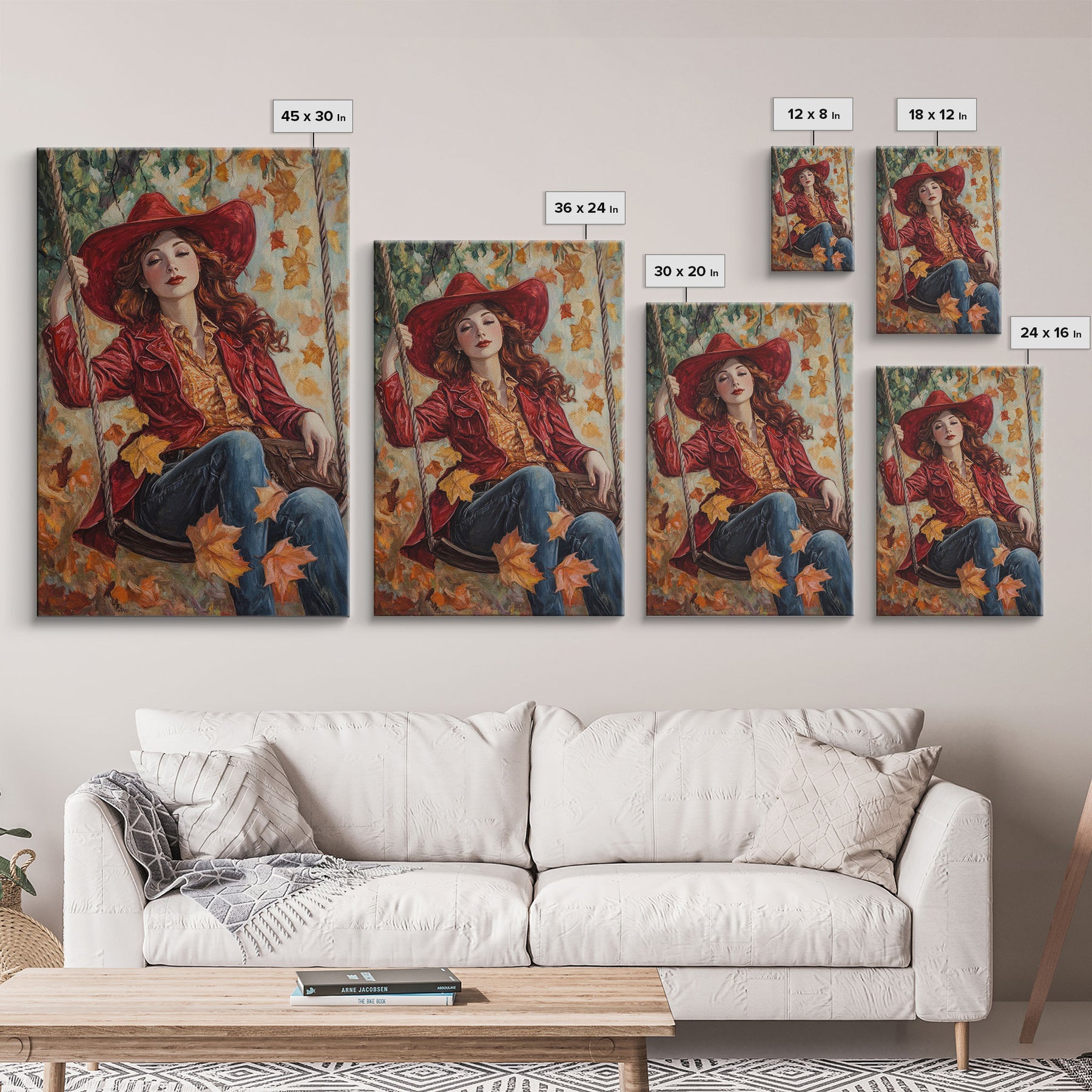Fall Cowgirl Enjoying Her Swing, Framed Canvas Print, Autumn Decor, Cute Wall Art Gift Idea