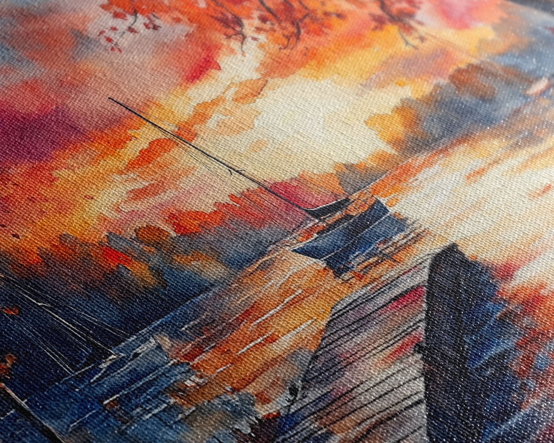 Most of our canvases are made in the USA, with the exception of canvases ordered with the light oak unstained frames, and any large canvases (24x48, 30x60, 16x48 and 20x60) ordered WITH a frame. These are temporarily made in and shipped from Europe, while we try to find a more consistent supplier in the USA.