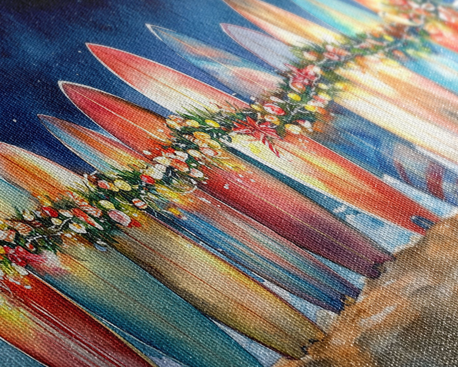 Most of our canvases are made in the USA, with the exception of canvases ordered with the light oak unstained frames, and any large canvases (24x48, 30x60, 16x48 and 20x60) ordered WITH a frame. These are temporarily made in and shipped from Europe, while we try to find a more consistent supplier in the USA.