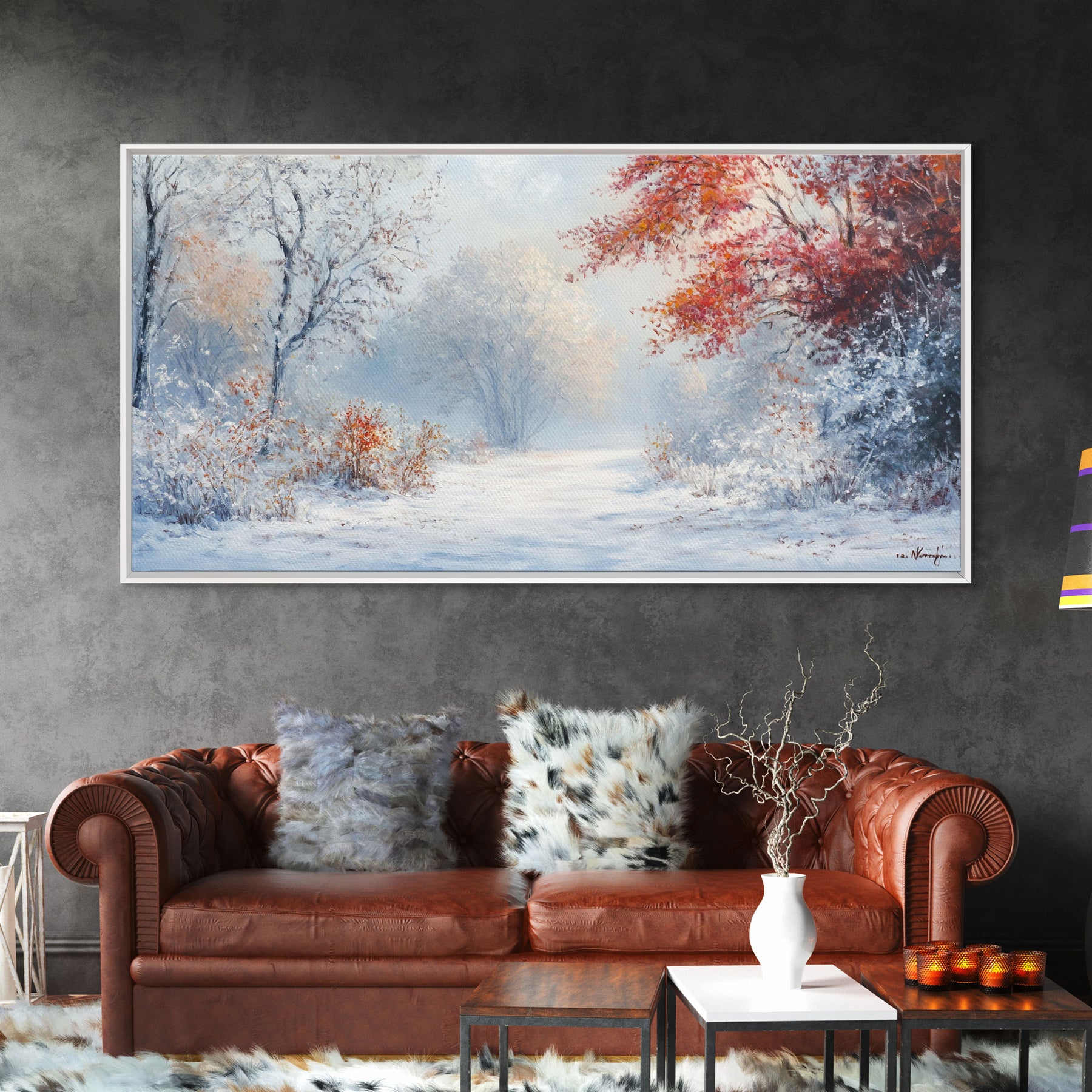 Cozy Cabin in the Snow Framed Canvas Print, Ideal Christmas Holiday Wall Art for Winter Wonderland Decor and Festive Home Interiors