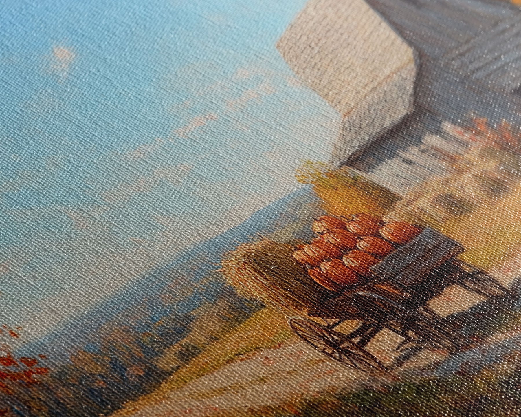 Most of our canvases are made in the USA, with the exception of canvases ordered with the light oak unstained frames, and any large canvases (24x48, 30x60, 16x48 and 20x60) ordered WITH a frame. These are temporarily made in and shipped from Europe, while we try to find a more consistent supplier in the USA.