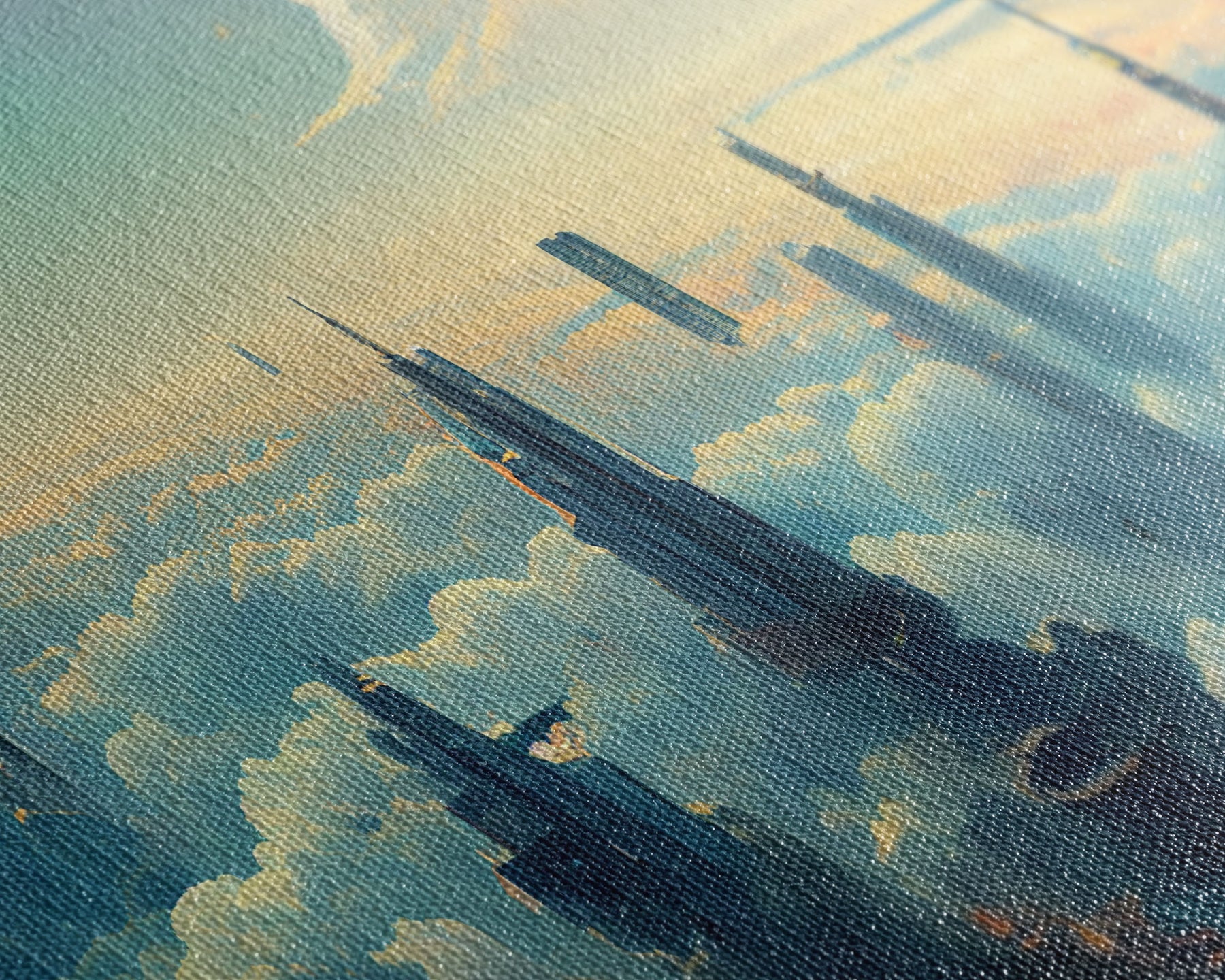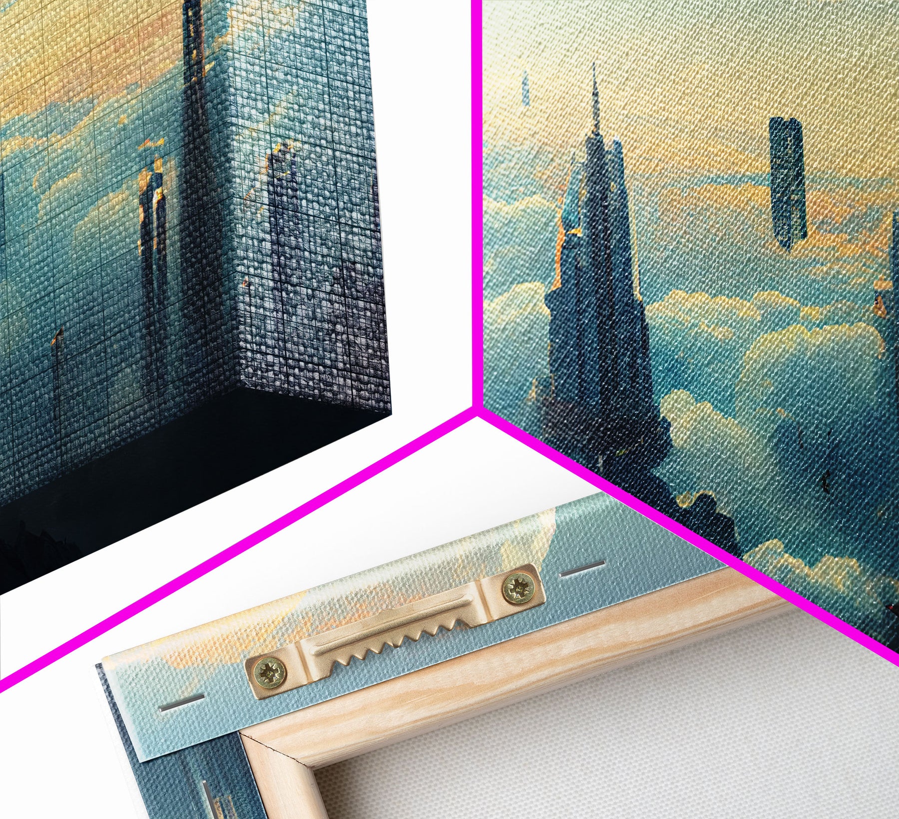 Cyberpunk City Above The Clouds, Futuristic Metropolis, Extra Large Wall Art, Framed Panoramic Canvas Print, Framed Wall Decor