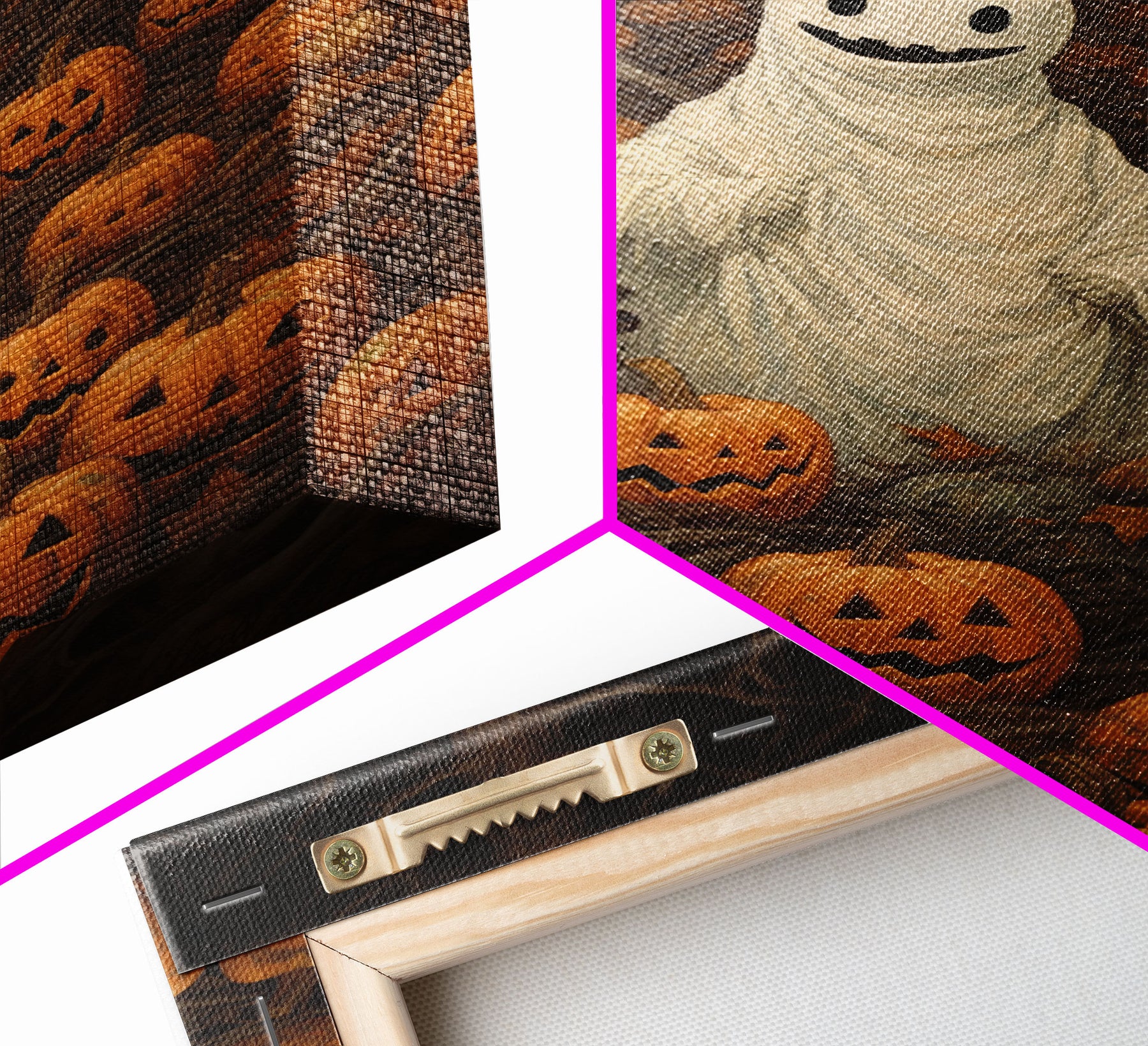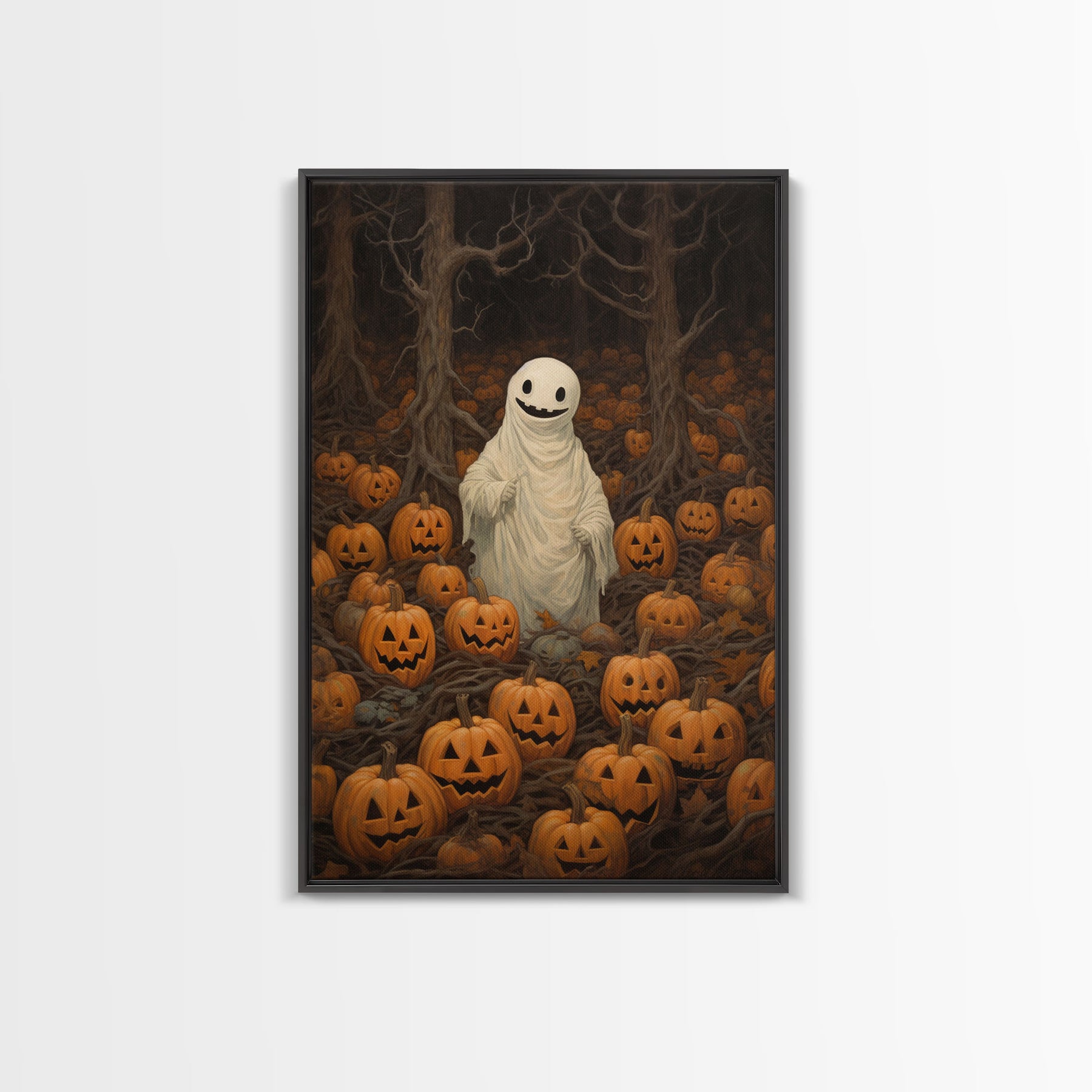 Fall Omens - Spooky Ghost In A Pumpkin Patch, Halloween Decor, Fall Art, Framed Canvas Print, Spooky Halloween Decor