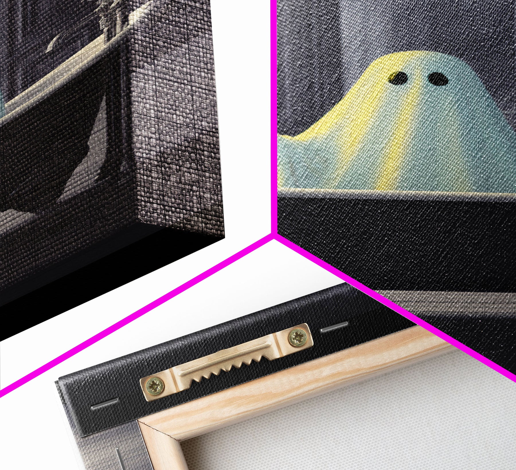 Funny Halloween Art, Ghost Takin' A Bath, Framed Canvas Print, Halloween Canvas, Ghost In The Tub, Goofy Gothic Victorian Art