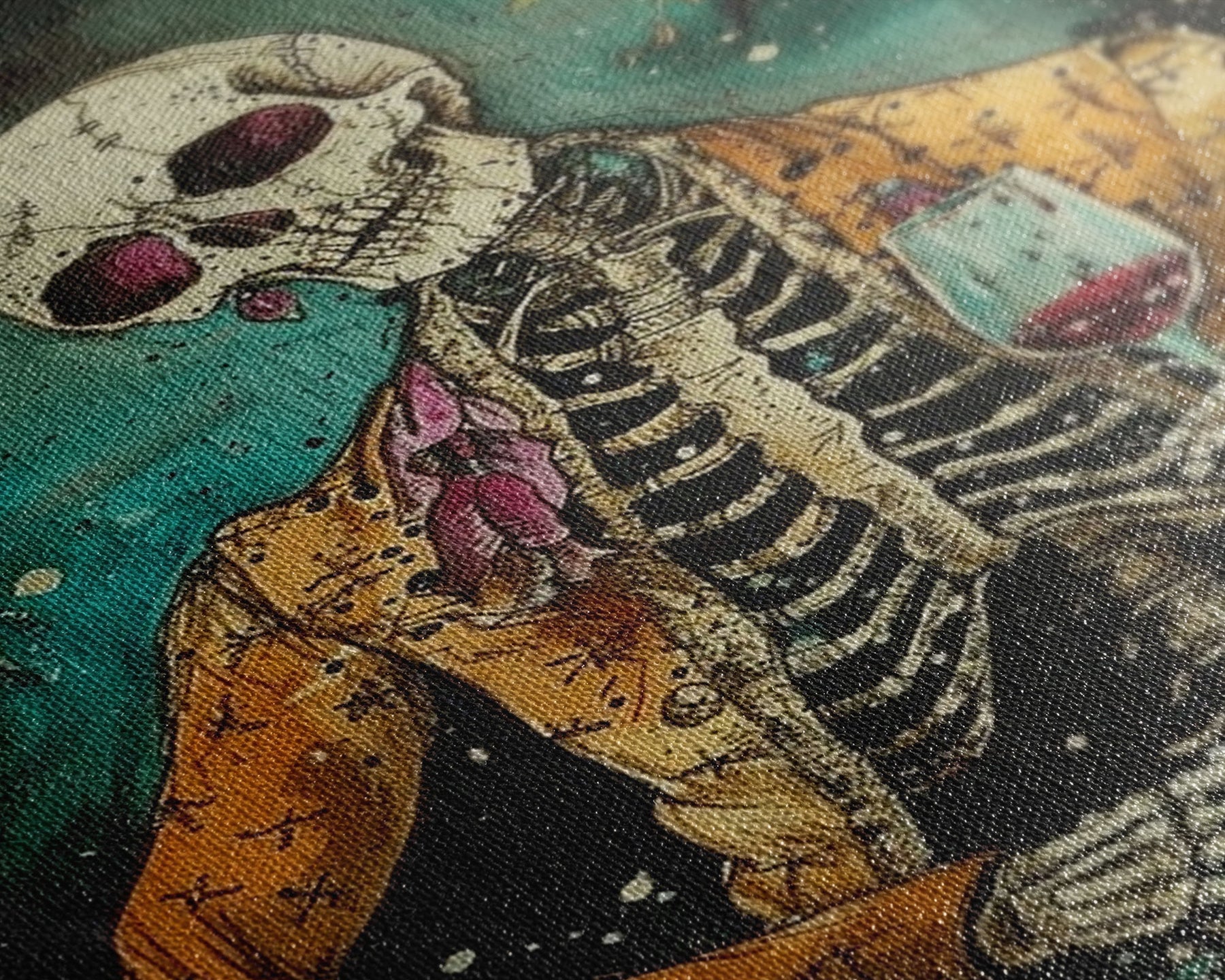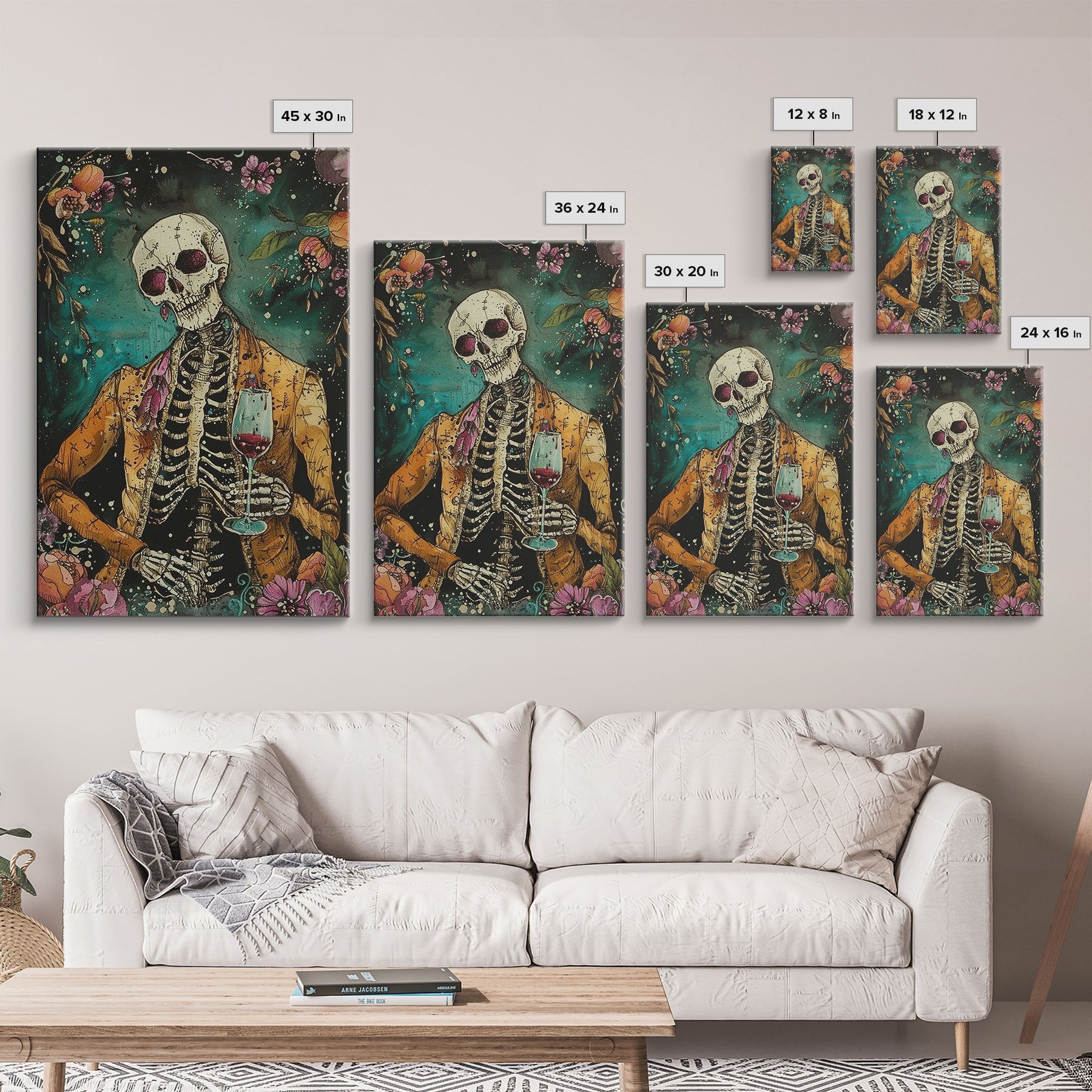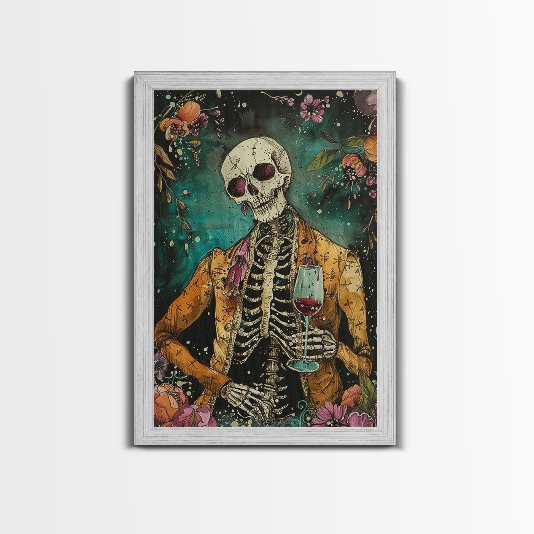 Skeleton Gentleman with Wine Glass Framed Canvas Print, Halloween Art, Creepy Wall Art, Spooky Home Decor, Scary Art, Unique Wall Decor