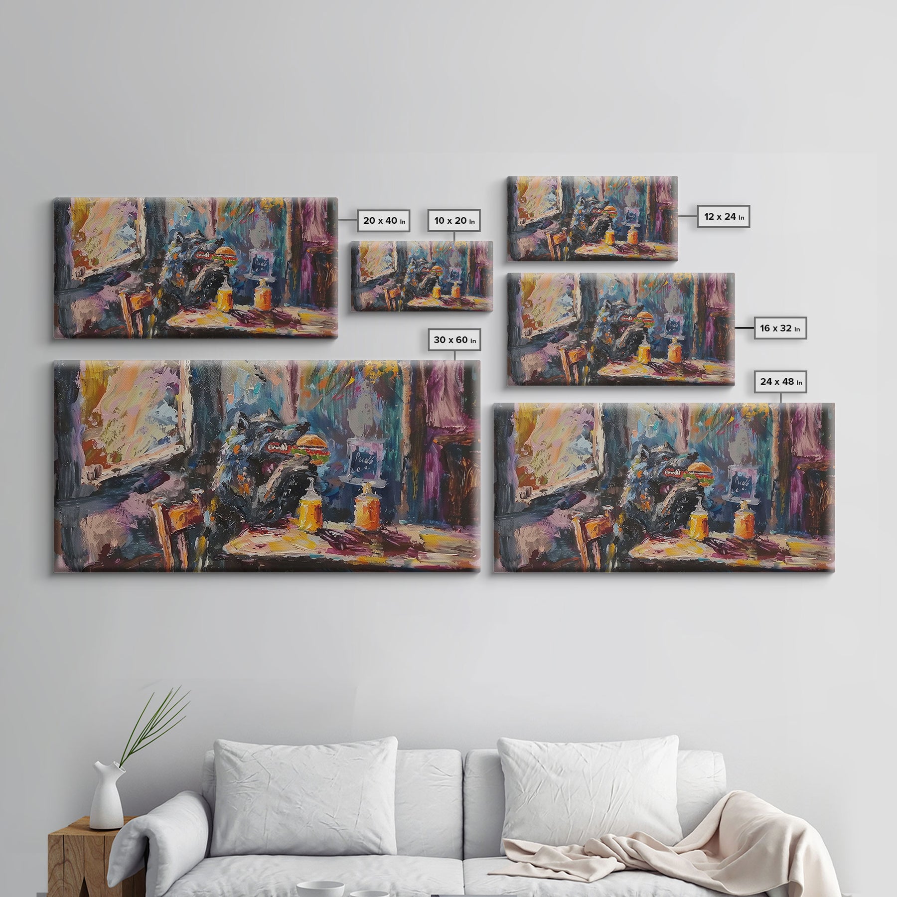 *Optional frames add a total of 1.5 inches to each dimension, for example a 10x20 canvas with a frame will be 11.5 by 21.5 inches total. All framed canvas are 1.5" total depth.