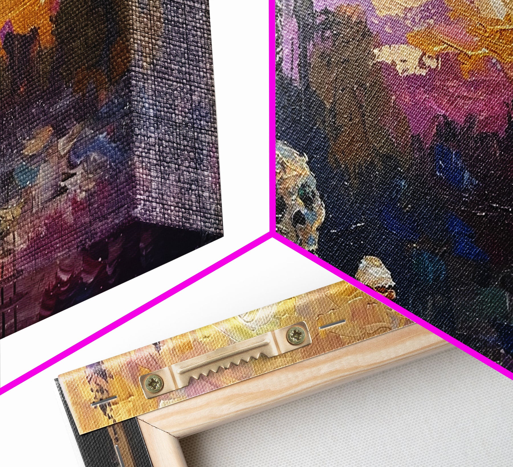 *SHIPPING: Every canvas is carefully wrapped in bubble wrap and foam corner protectors, and shipped fully assembled and ready to hang with sawtooth hangers in a flat box. All you need is a hammer!