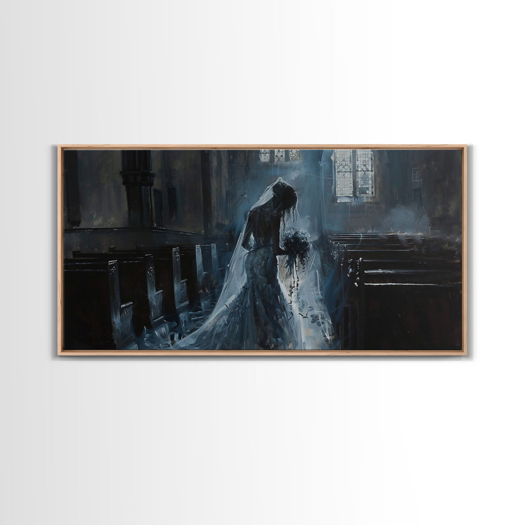 The Ghostly Bride, Cottage Core Ghost Decor, Cottagecore Halloween Art Framed Canvas Print, Unique Wall Art, Spooky Season Decor