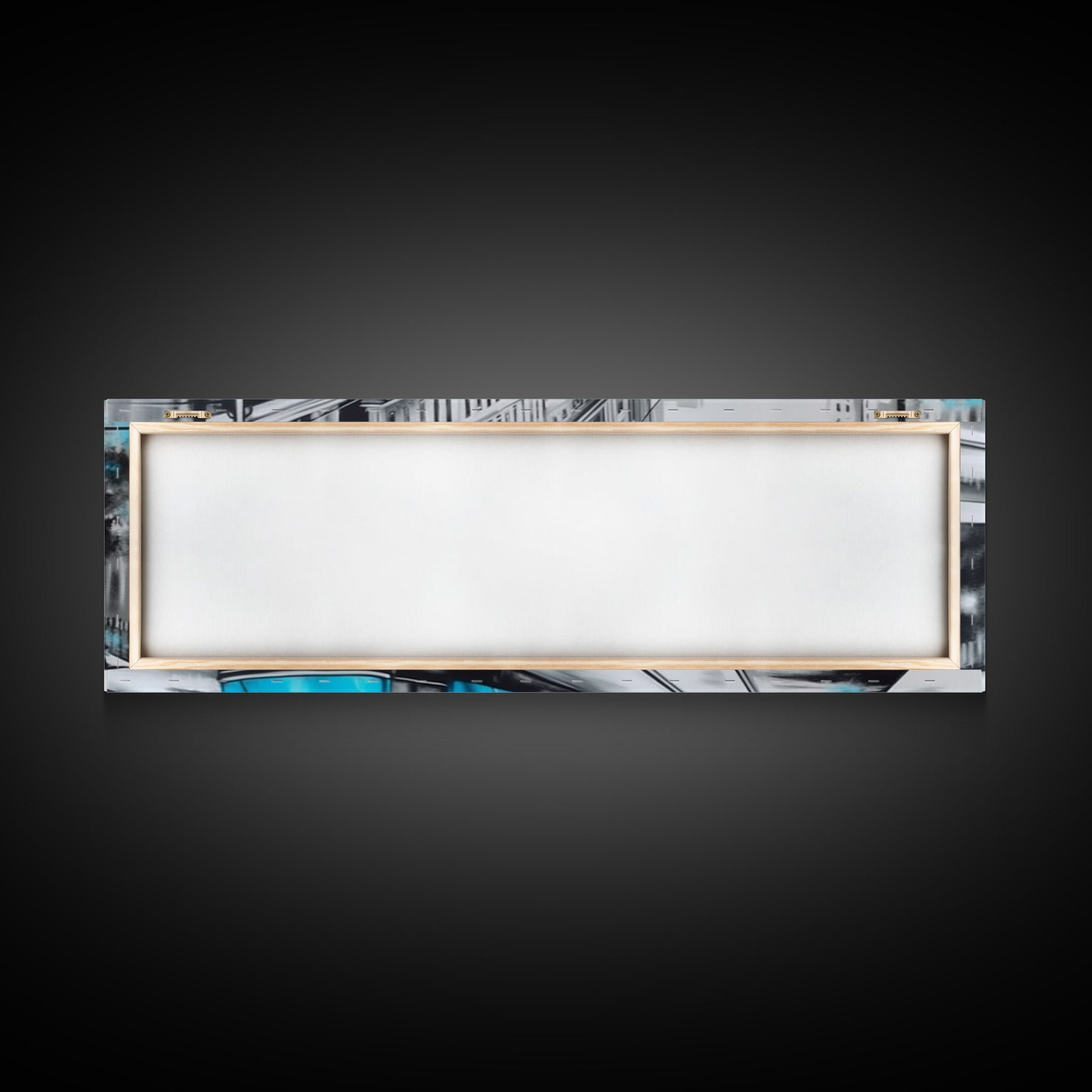 Teal Train, Tram In The City, Urban Art Painting, Large Mixed Media Art, Streetcar Print, City Art, Panoramic, Wall Art, Canvas Print