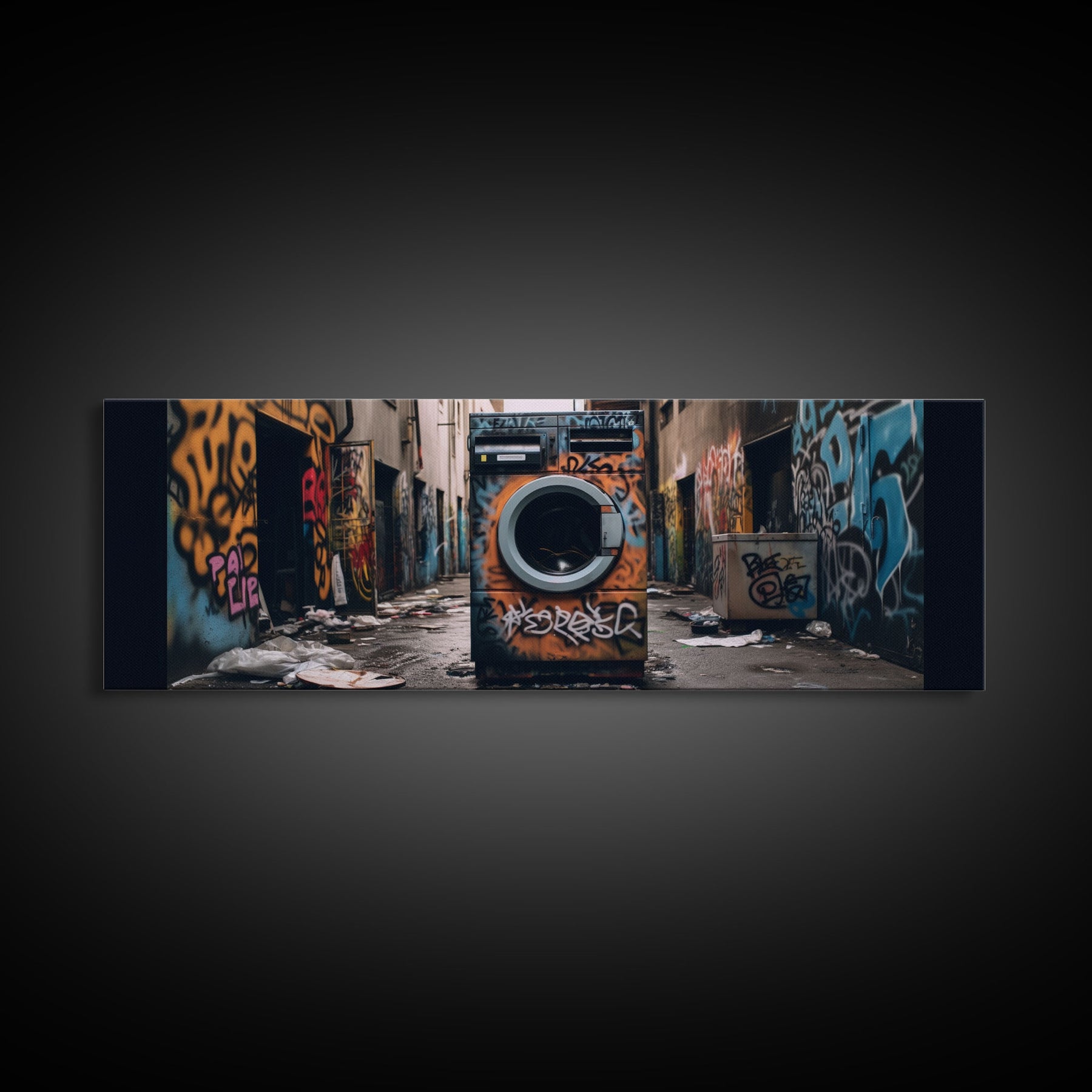 Urban Decay Graffiti Punk Wall Art, Street Art, Framed Canvas Print, Washing Machine, Limited Edition, High Quality Art, Game Room Art