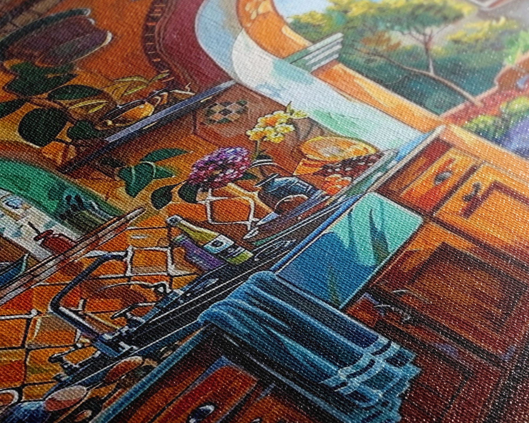 Most of our canvases are made in the USA, with the exception of canvases ordered with the light oak unstained frames, and any large canvases (24x48, 30x60, 16x48 and 20x60) ordered WITH a frame. These are temporarily made in and shipped from Europe, while we try to find a more consistent supplier in the USA.