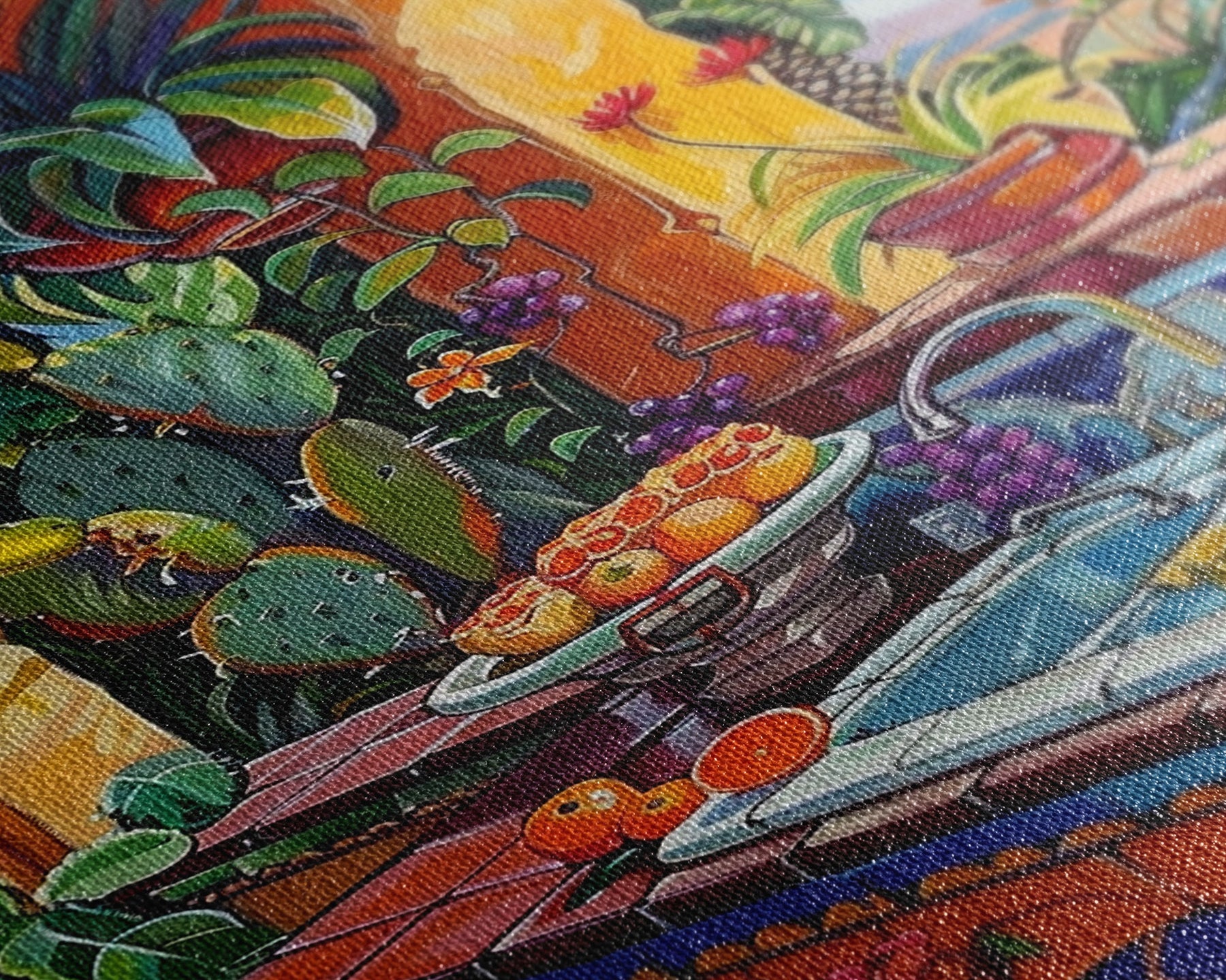 Most of our canvases are made in the USA, with the exception of canvases ordered with the light oak unstained frames, and any large canvases (24x48, 30x60, 16x48 and 20x60) ordered WITH a frame. These are temporarily made in and shipped from Europe, while we try to find a more consistent supplier in the USA.