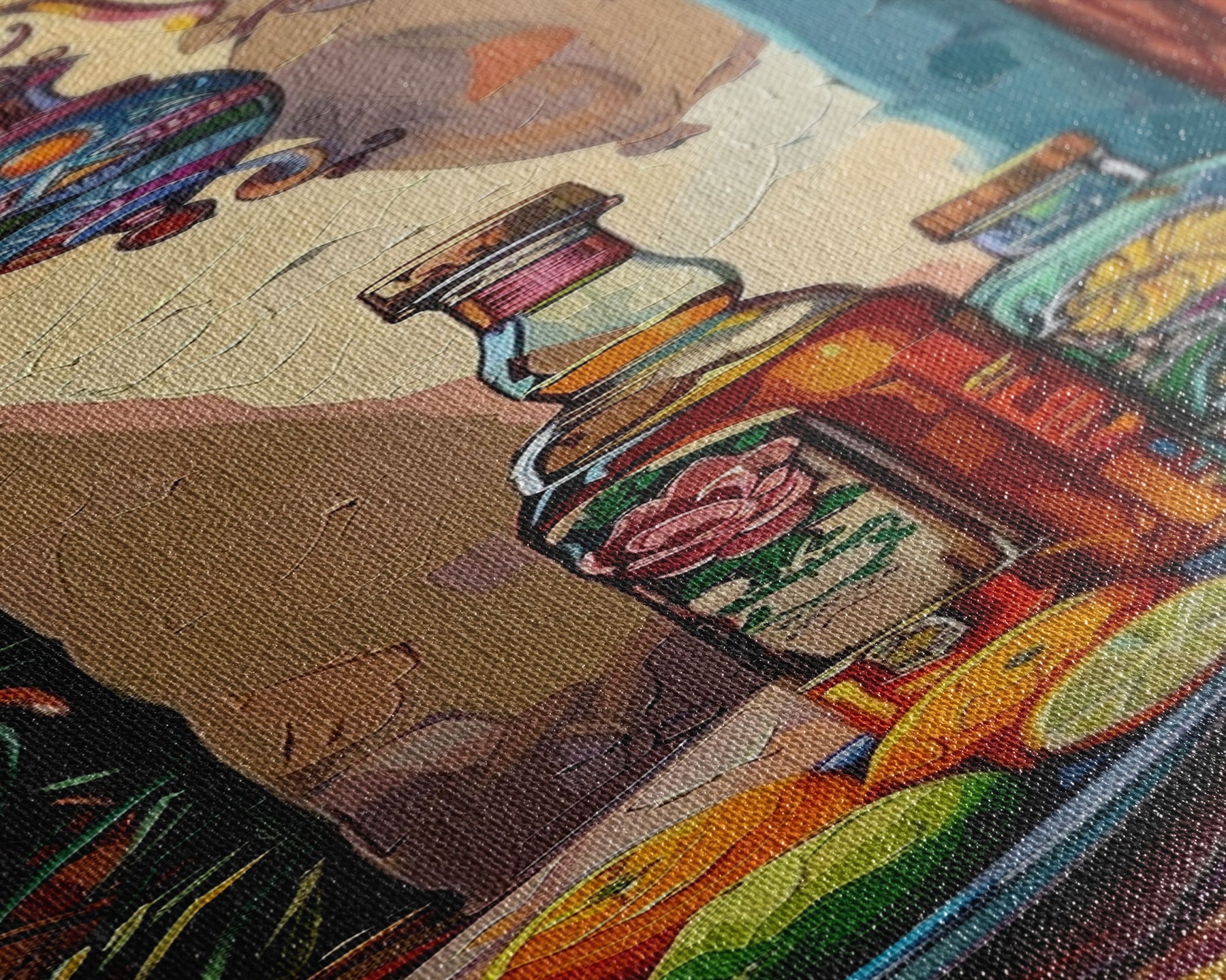 Most of our canvases are made in the USA, with the exception of canvases ordered with the light oak unstained frames, and any large canvases (24x48, 30x60, 16x48 and 20x60) ordered WITH a frame. These are temporarily made in and shipped from Europe, while we try to find a more consistent supplier in the USA.