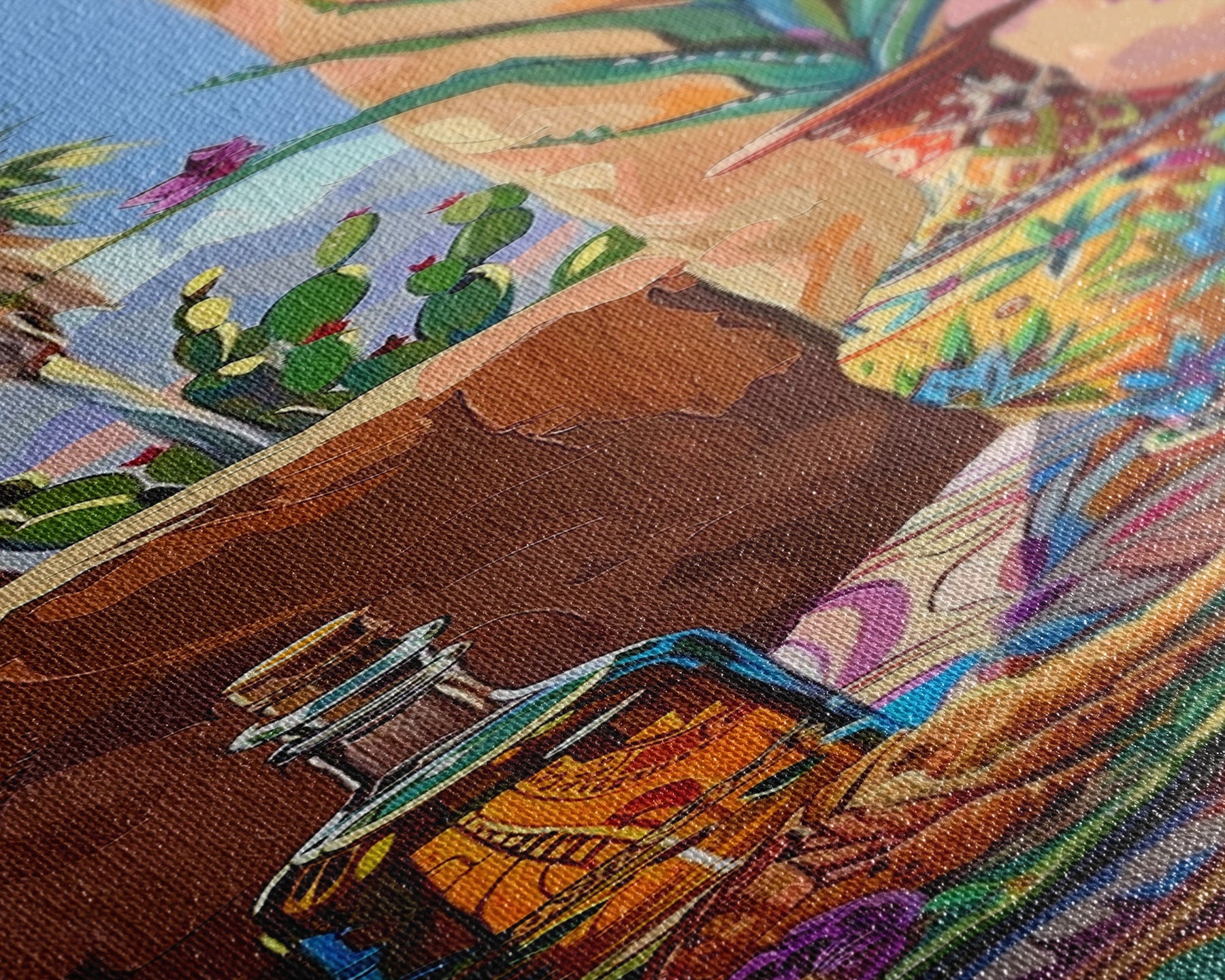 Most of our canvases are made in the USA, with the exception of canvases ordered with the light oak unstained frames, and any large canvases (24x48, 30x60, 16x48 and 20x60) ordered WITH a frame. These are temporarily made in and shipped from Europe, while we try to find a more consistent supplier in the USA.