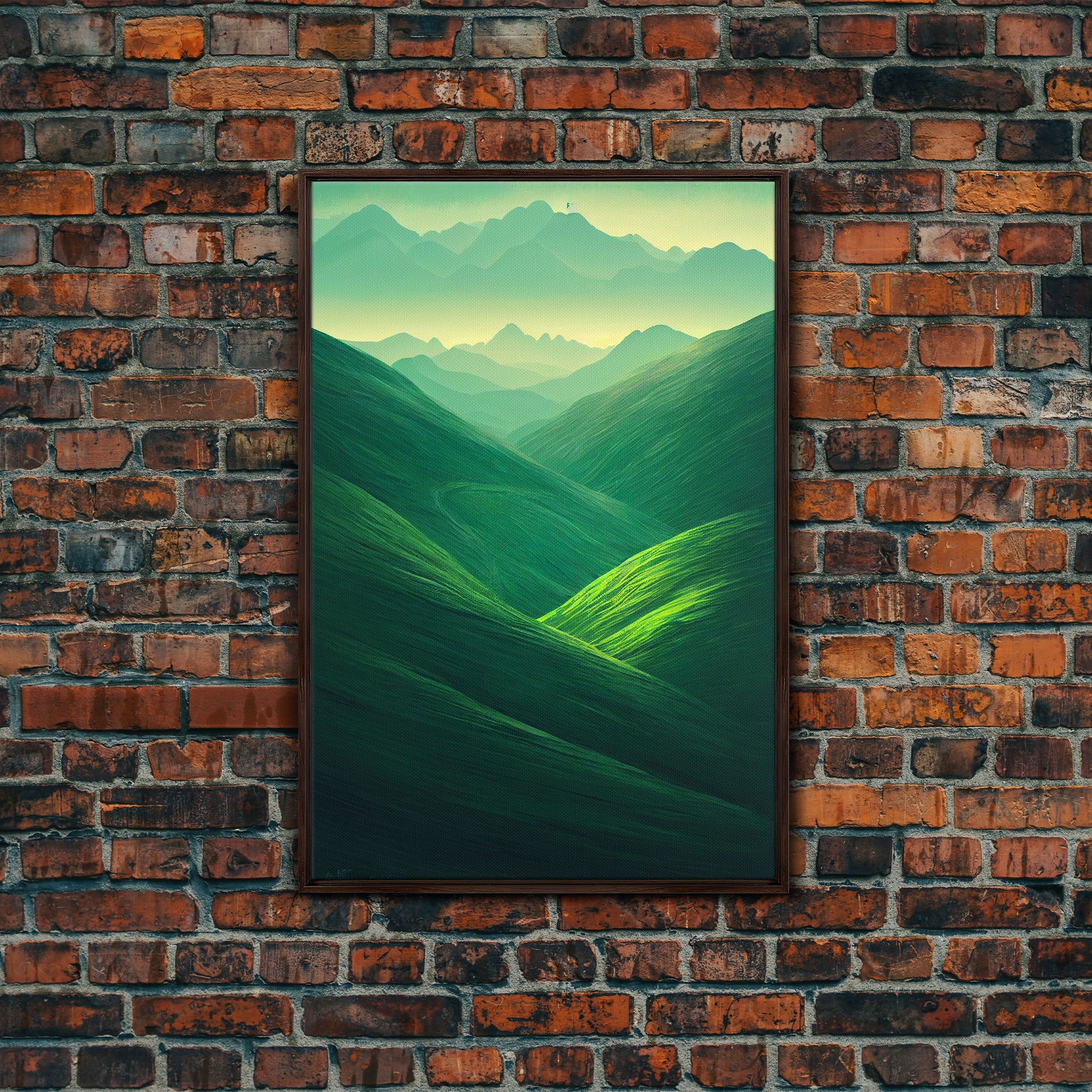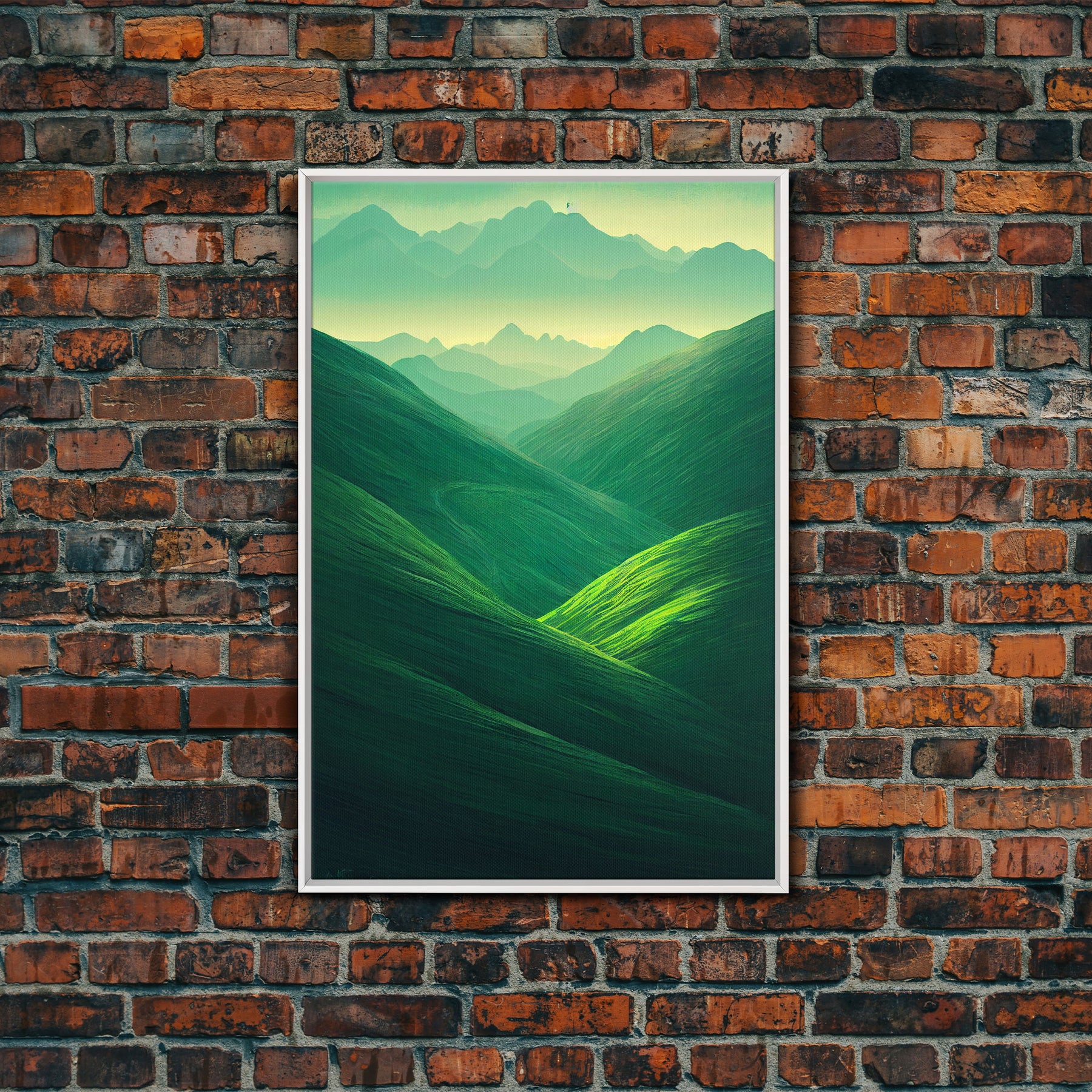 Emerald Green Landscape, Rolling Hills of Ireland, Framed Canvas Print, Ready To Hang Framed Wall Art, Living Room Wall Hanging