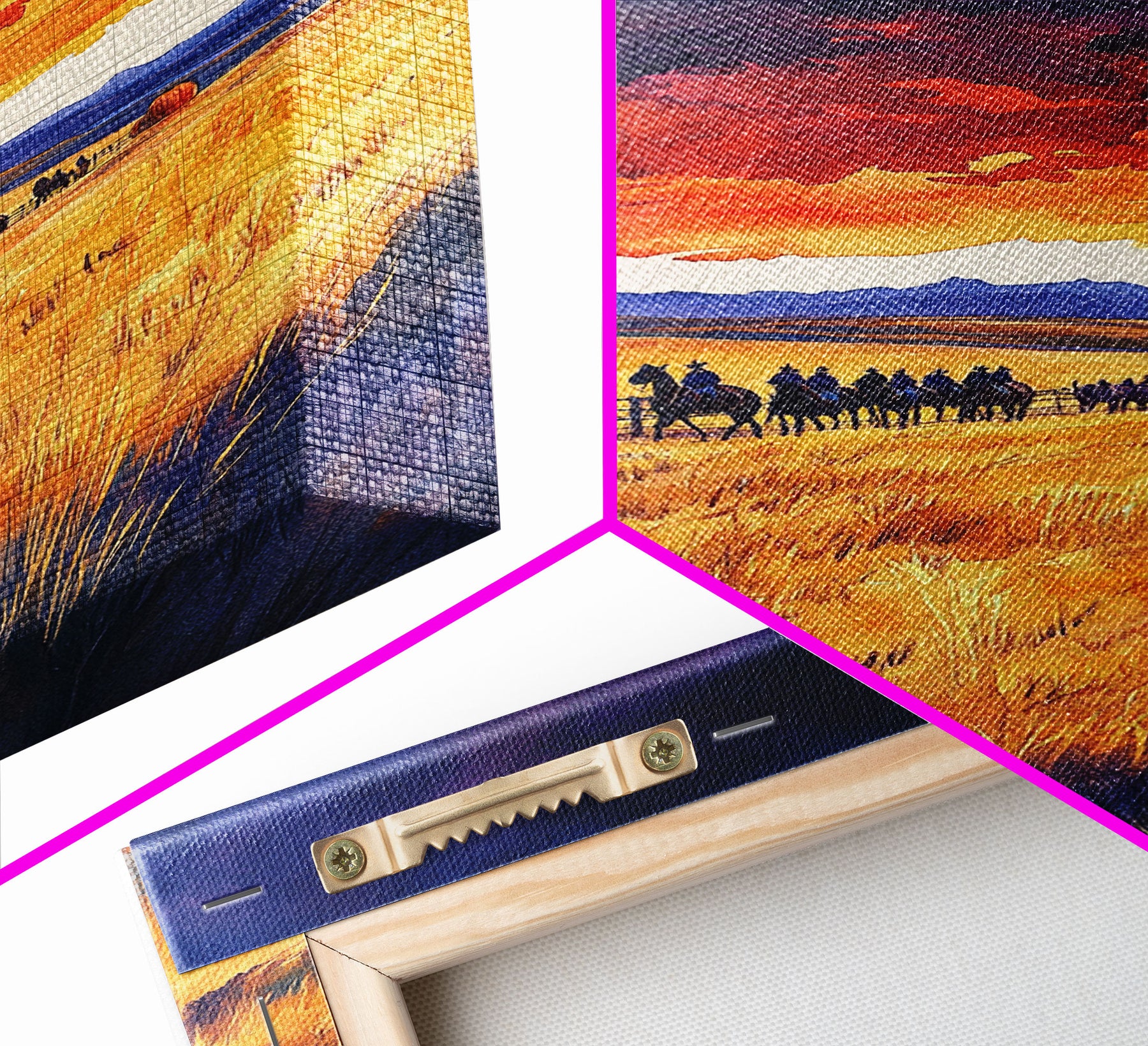 *SHIPPING: Every canvas is carefully wrapped in bubble wrap and foam corner protectors, and shipped fully assembled and ready to hang with sawtooth hangers in a flat box. All you need is a hammer!