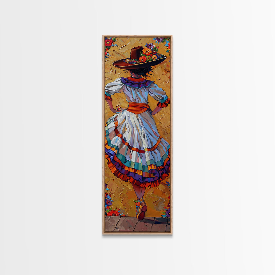 Textured Canvas Painting Print of Mexican Flamenco Dancer, Spanish Framed Art, Rustic Wall Art Print for Living Room, Oversized Vertical Art