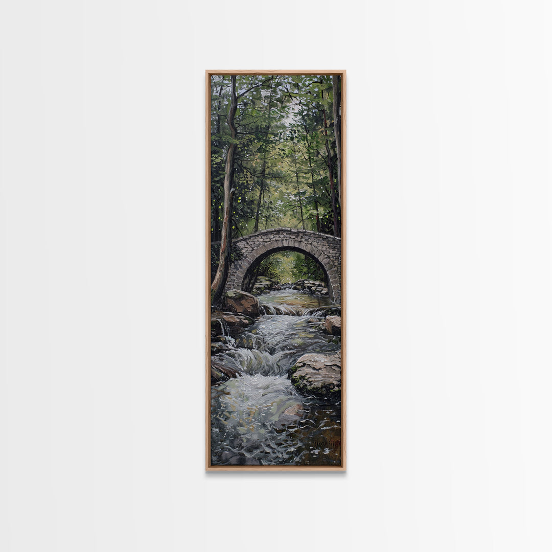The Autumn Bridge, Framed Canvas print, New England Landscape Painting Print, Wall Art, Home Decor
