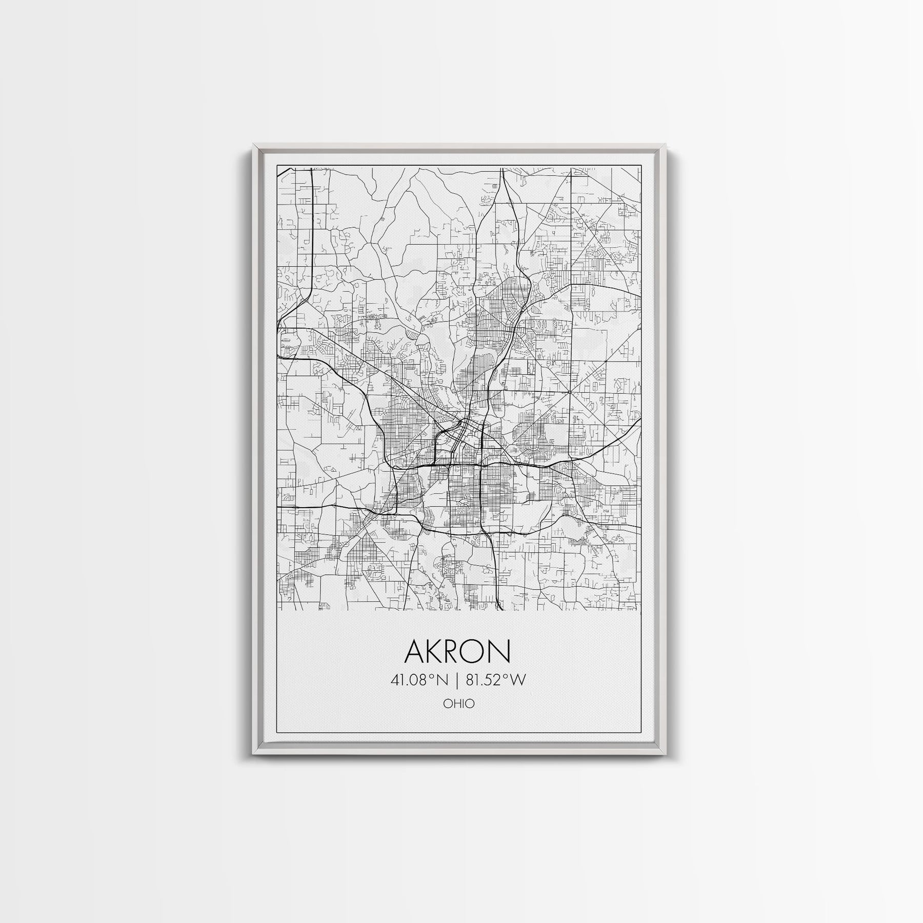 Akron Street Map, Akron Map, Map Wall Art, Office Wall Art, City Map Print, Minimalist, Modern Art, Wall Art, Canvas Print, Canvas Wall Art
