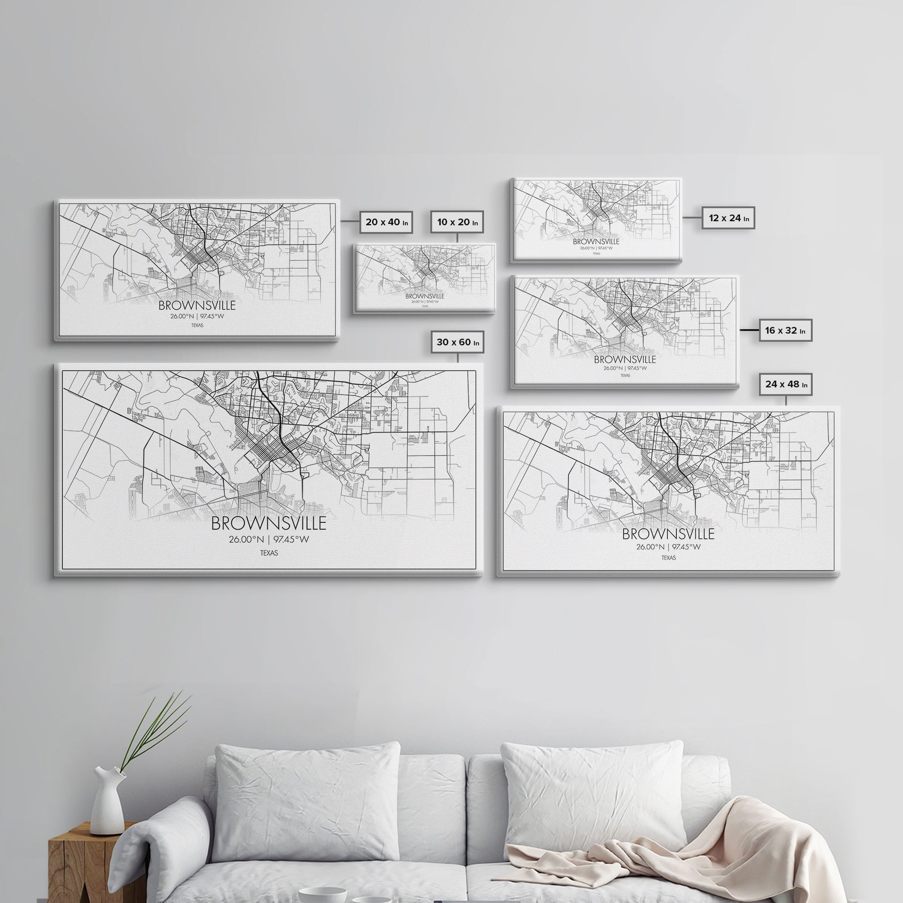 Brownsville Street Map, Texas Map, Map Print, Modern Art, Wall Art, Canvas Art, Realtor Closing Gift, Wall Décor Over The Bed, Couples Gift