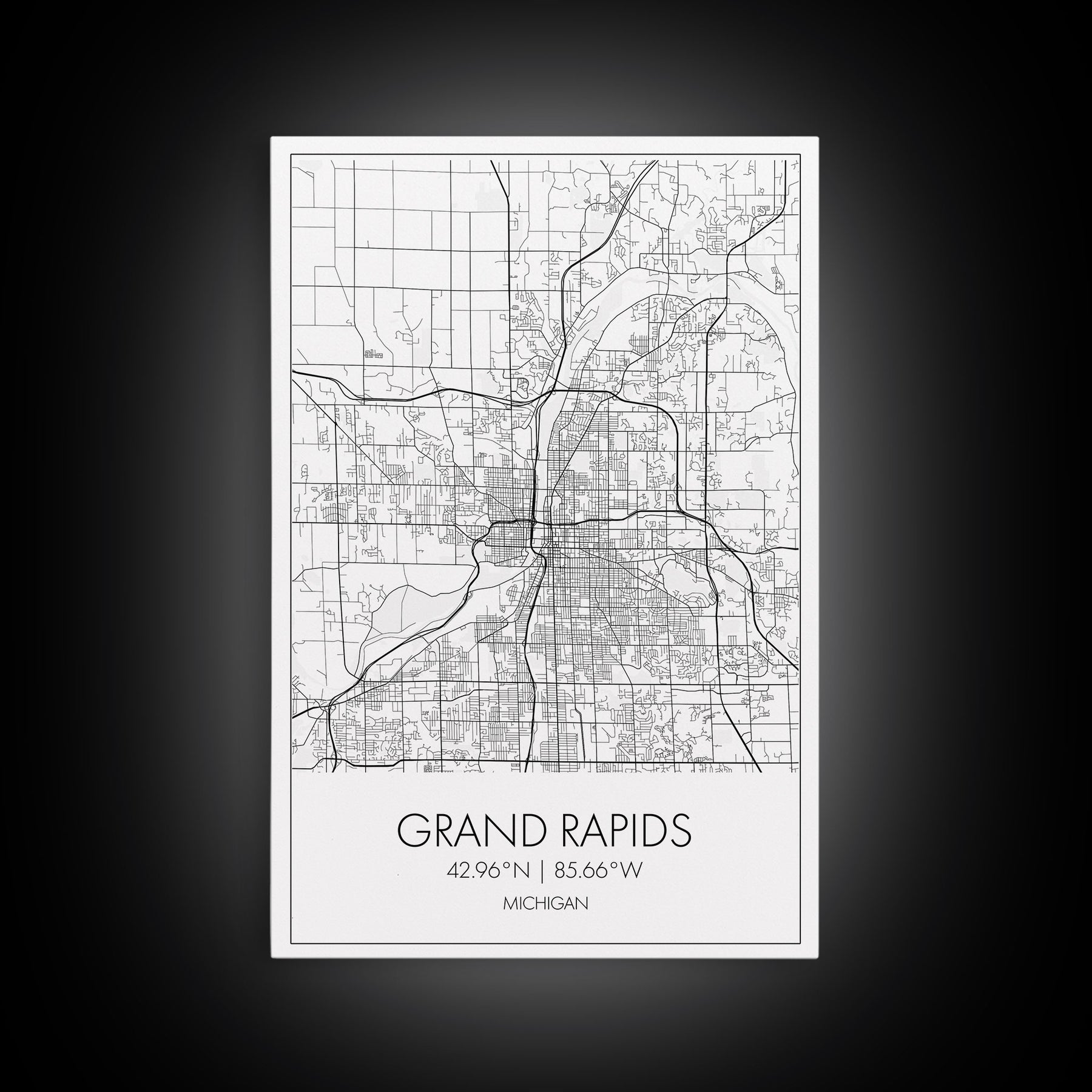 Grand Rapids Street Map, Michigan Map, City Map Art, Minimalist Art, Wall Art, Canvas Print, Black And White, Travel Art, Office Wall Art