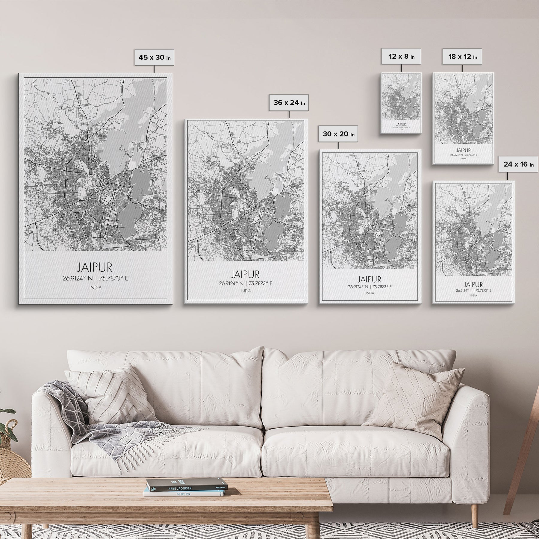 Jaipur Street Map, India Map, Asia City Map Art, Modern Wall Art, Wall Art, Canvas Print, Bedroom Print, Gifts For Her, Travel Wall Décor