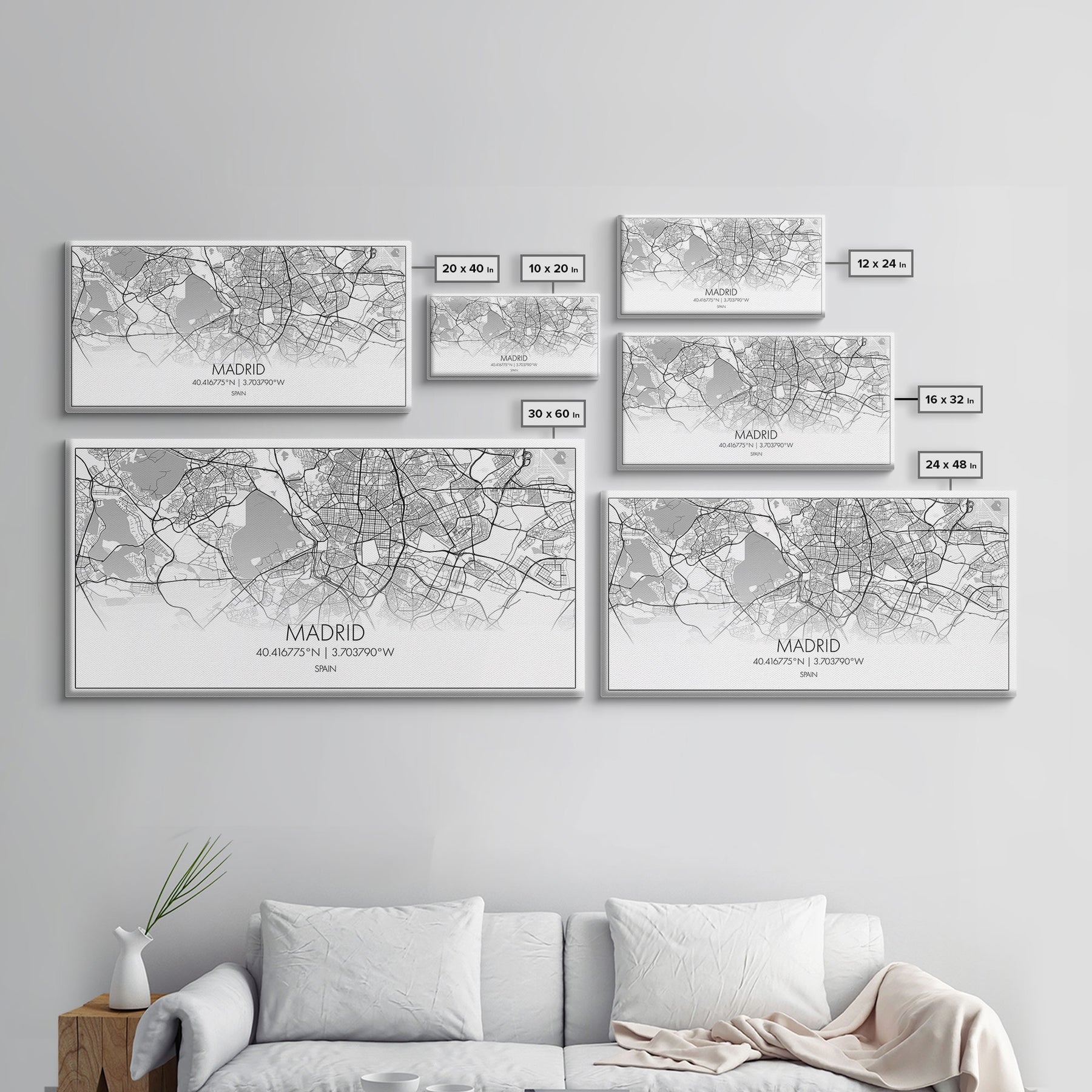 Madrid City Map, Spain Map, Map Art, Modern Art, Wall Art, Canvas Art, Europe Wall Art, Girl Room Décor, Mens Gift, Preppy Wall Art, Office