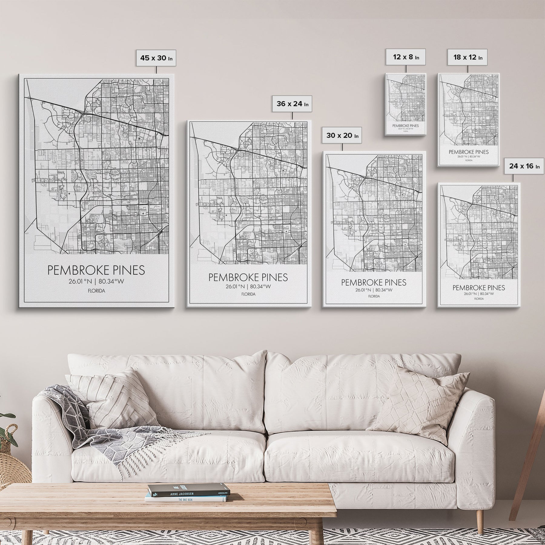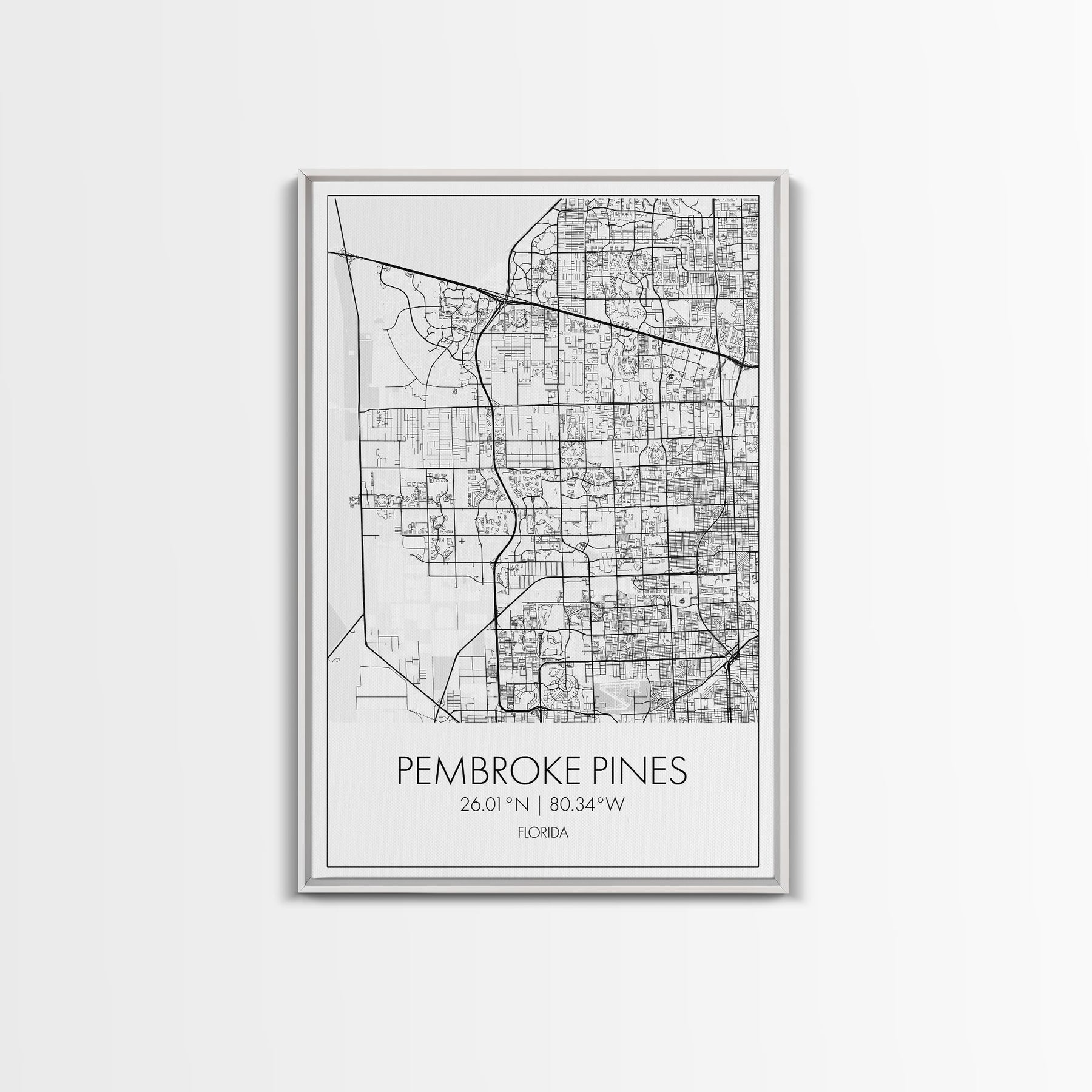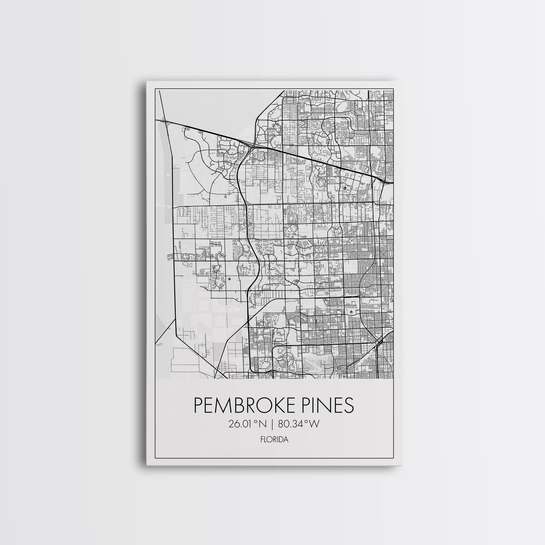 Pembroke Pines Street Map, Florida Map, City Map Art, Minimalist Art, Wall Art, Canvas Print, Home Décor Wall Art, Wedding Gift, Travel Art