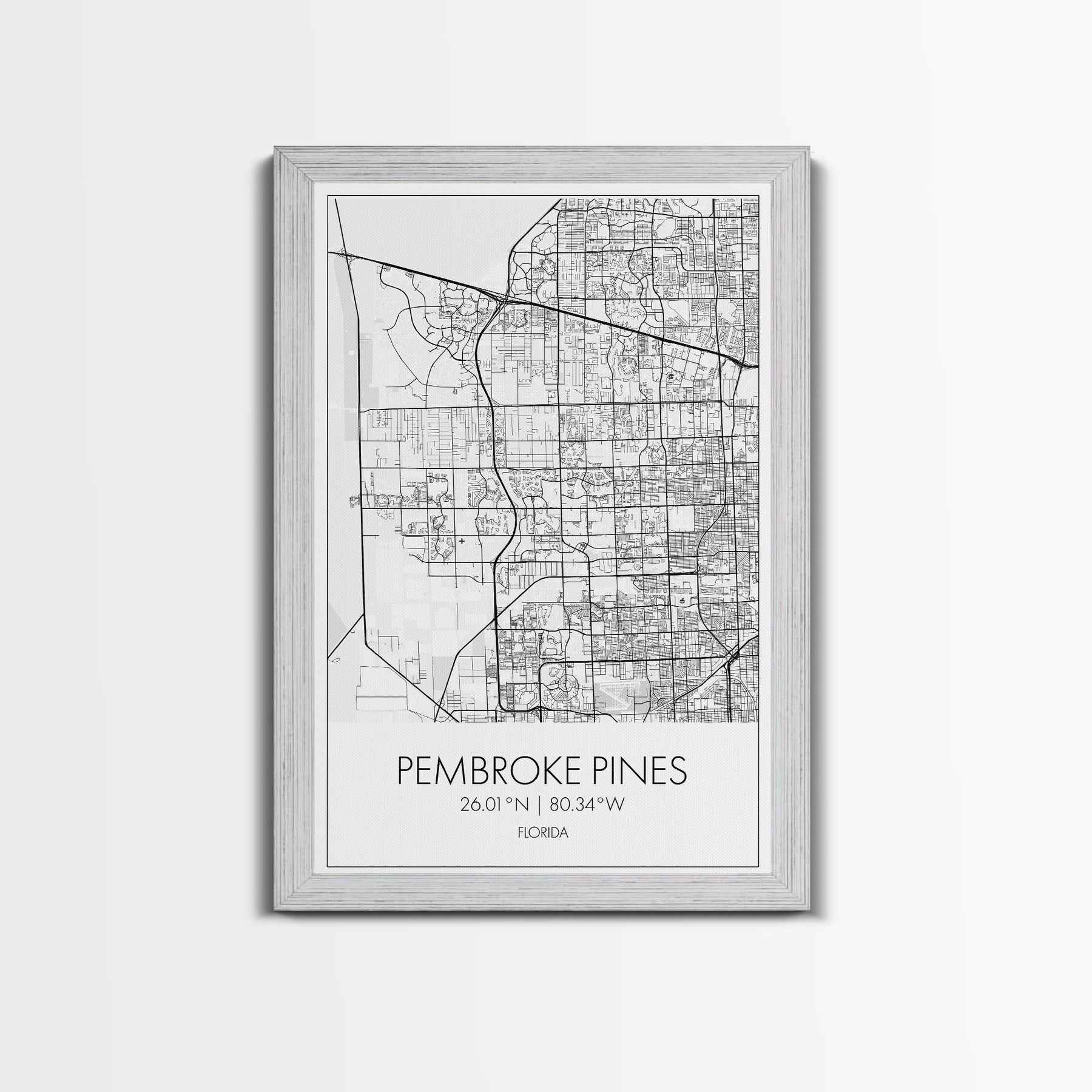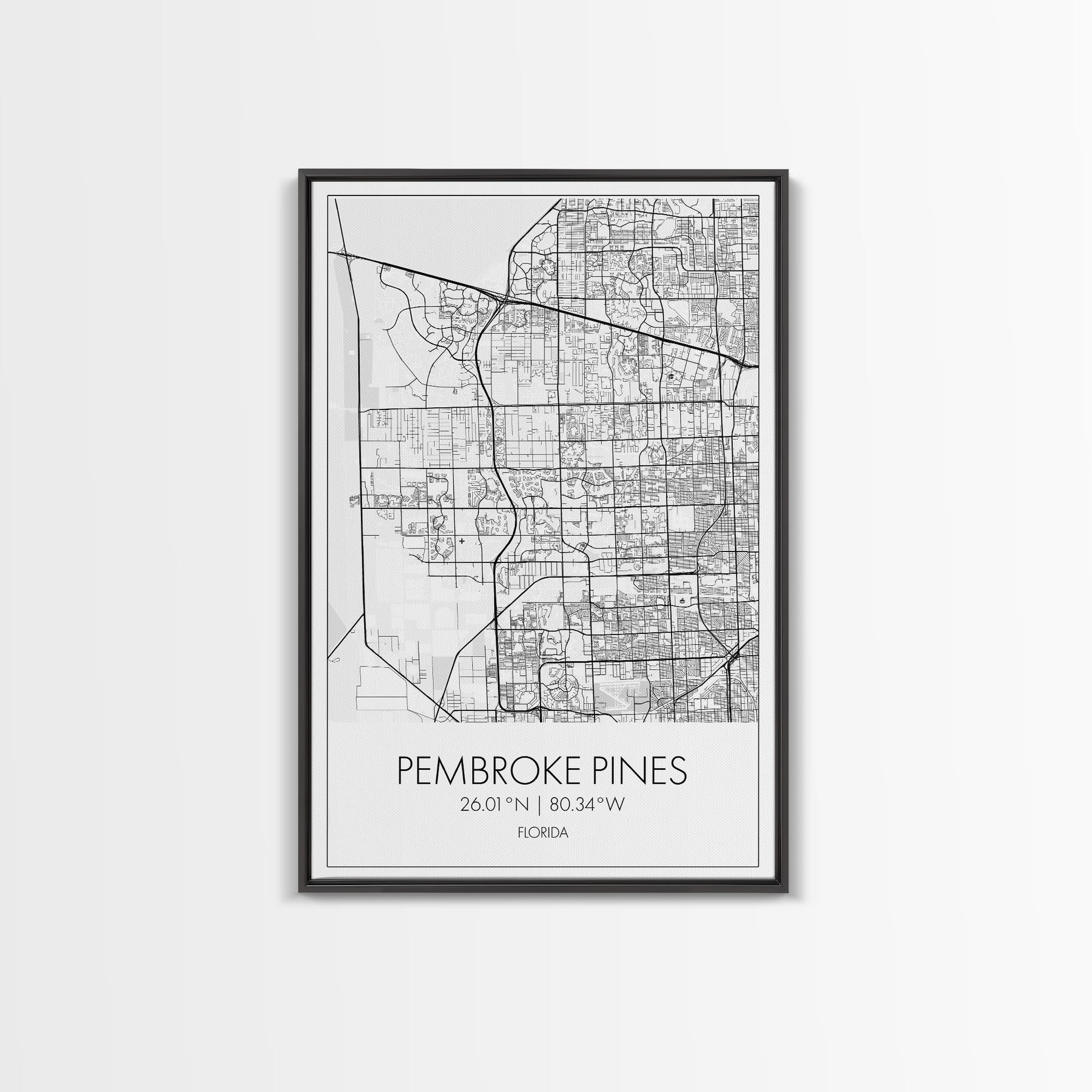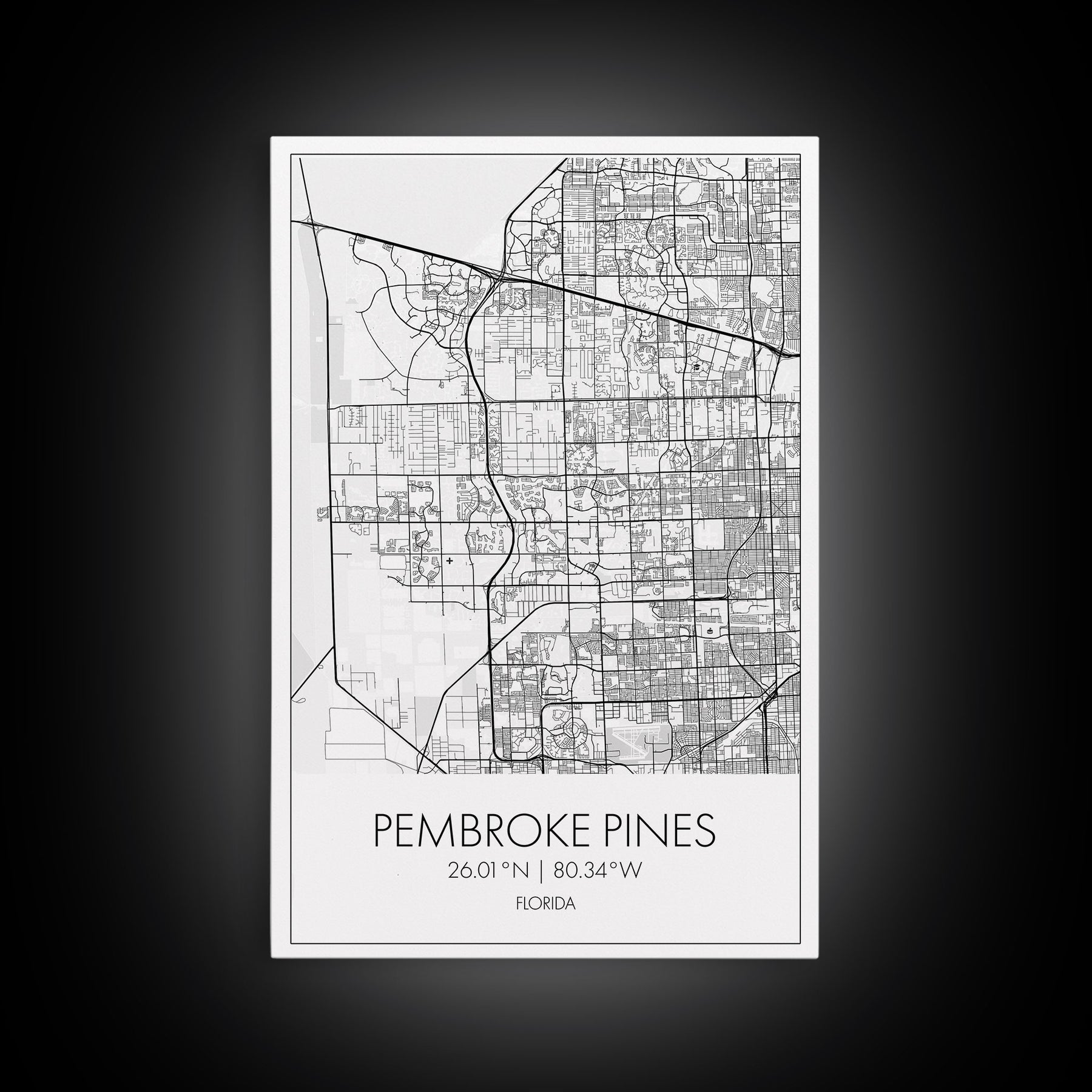 Pembroke Pines Street Map, Florida Map, City Map Art, Minimalist Art, Wall Art, Canvas Print, Home Décor Wall Art, Wedding Gift, Travel Art