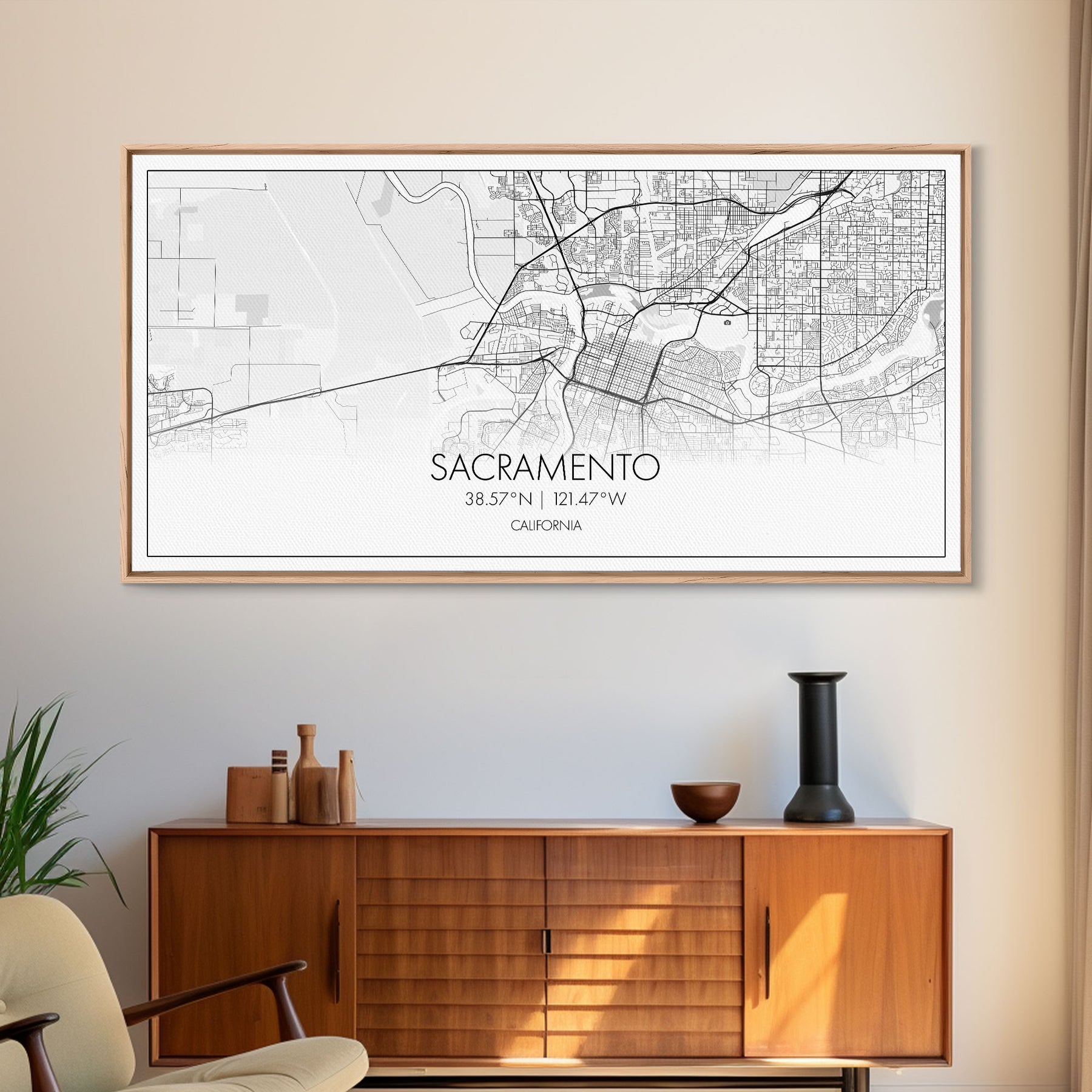 Sacramento City Map, California Art, Map Print, Minimalist Wall Art, Wall Art, Canvas Art, Large Wall Art, Room Décor, Office Prints