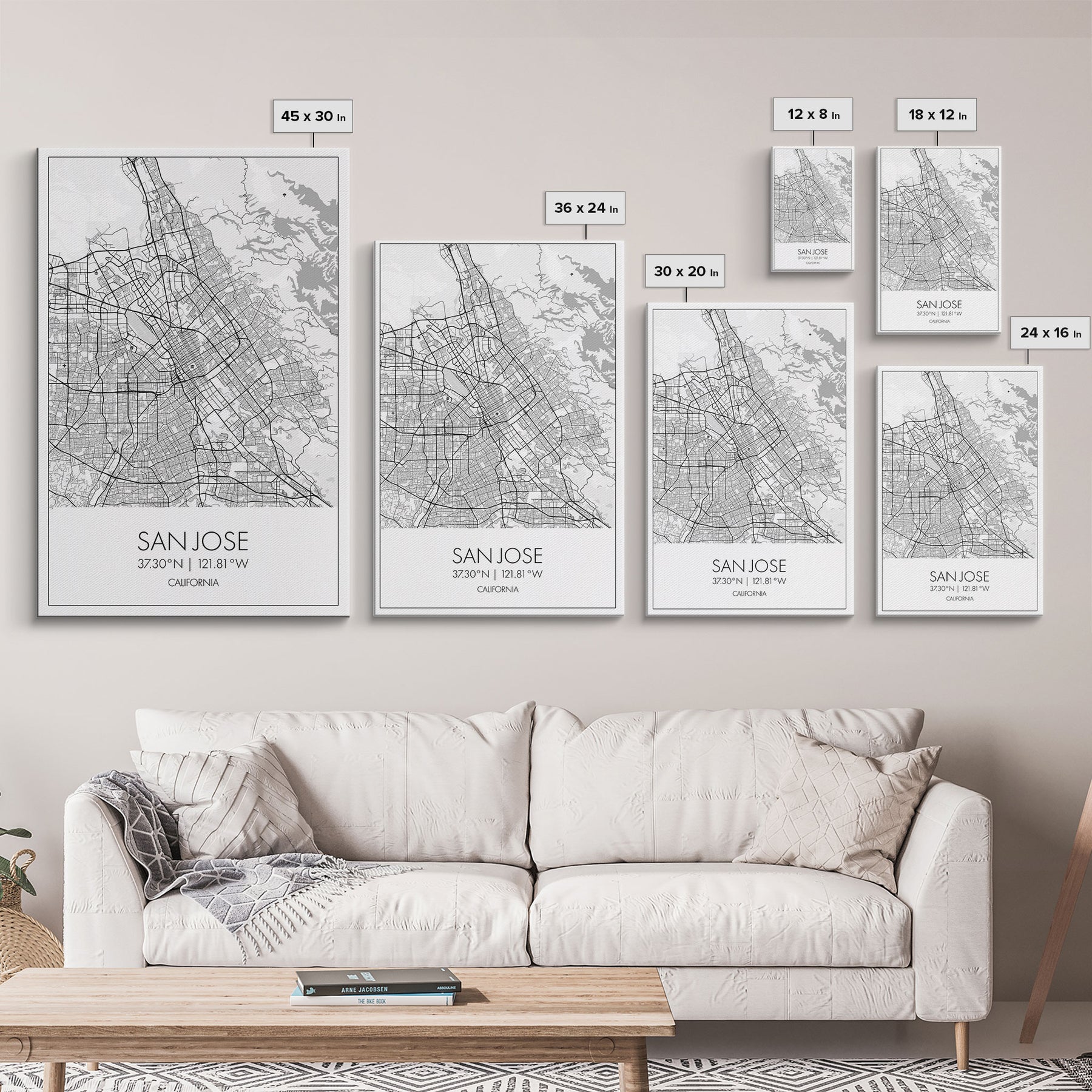 San Jose Street Map, California Map, City Map Print, Minimalist Art, Wall Art, Canvas Print, Girl Graduation Gift, Game Room Wall Art