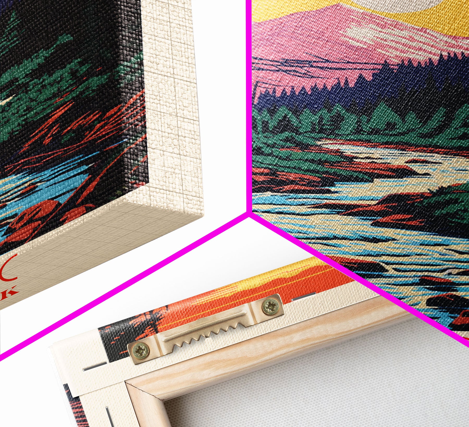 Hello and thank you for taking the time to view our modern high quality giclée artwork! We offer both posters and stretched canvas prints. Our posters are printed on Ultra Matte 60 lb / 230 GSM high quality photo paper, with a thickness of 10 mil. Our canvases are printed on museum grade 350 GSM canvas material with ECO friendly archival grade ink, then hand stretched and stapled over premium, FSC certified and shrink resistant frames. Designed and built to last a lifetime.