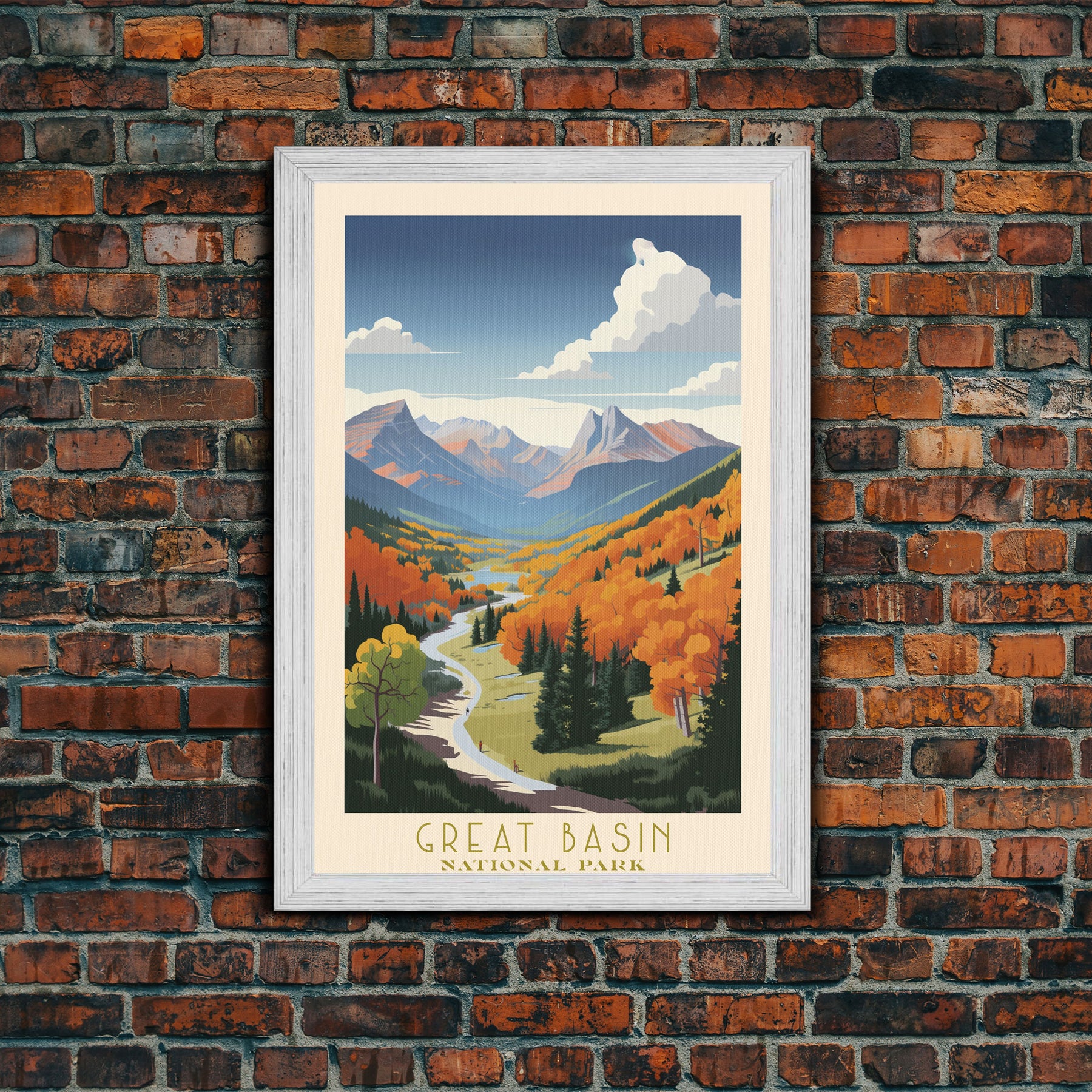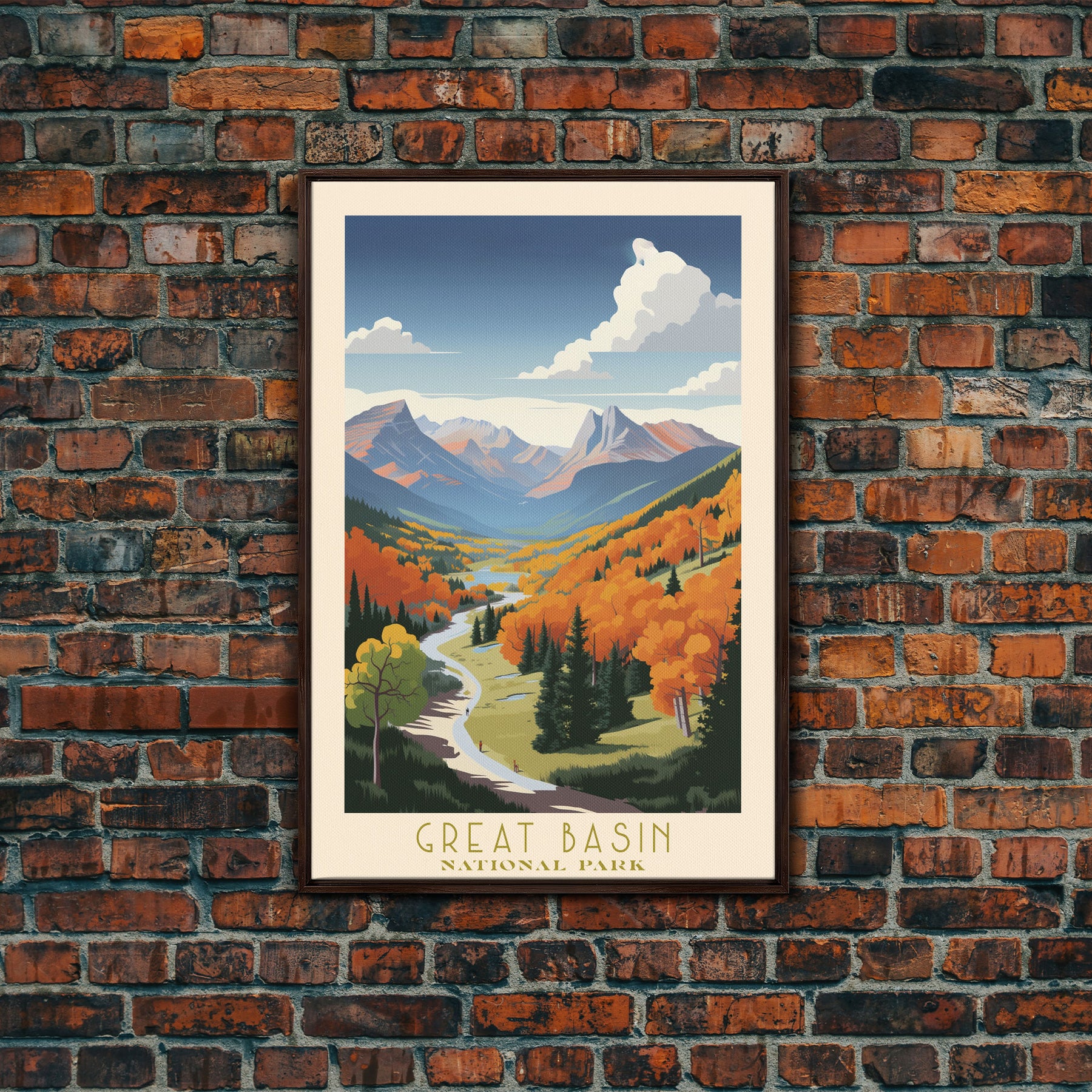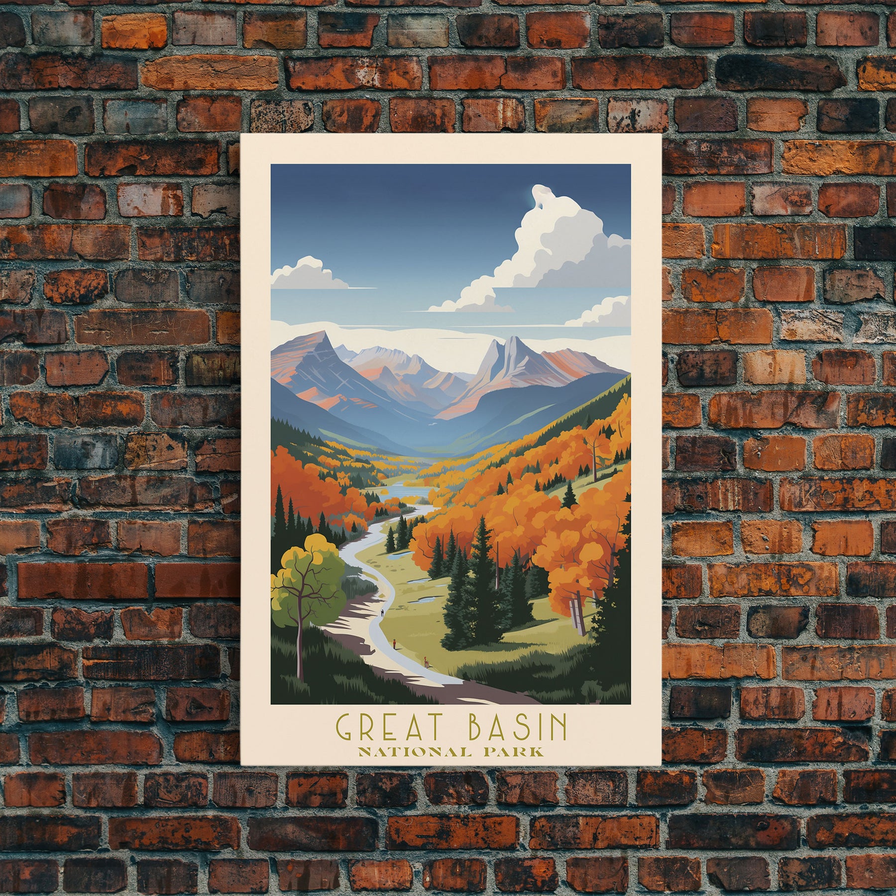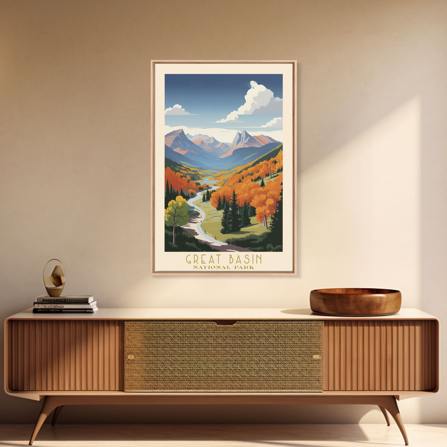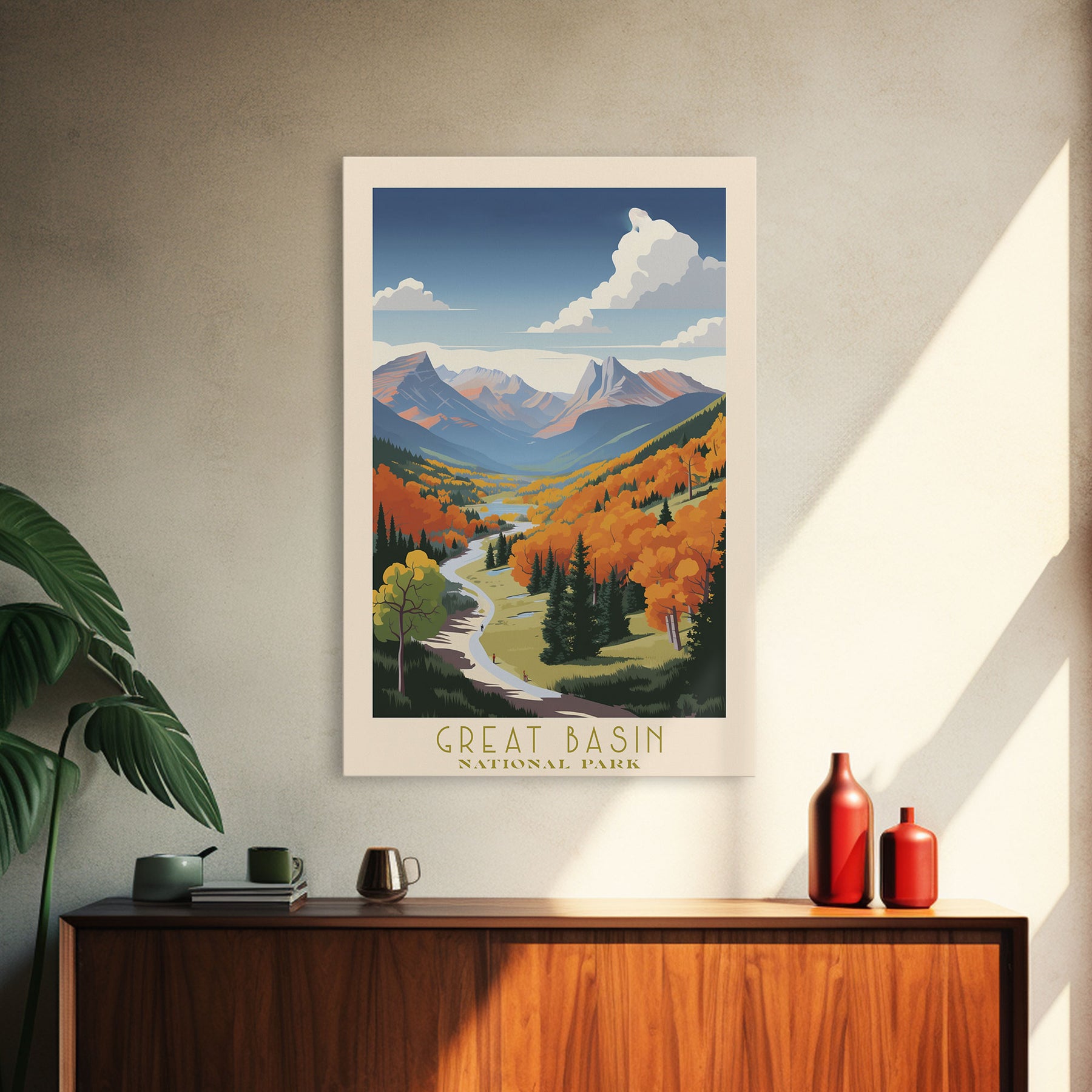 Great Basin National Park Nevada Travel Art, National Park Print, Minimalist Travel Art, Midcentury Modern Style Landscape Painting