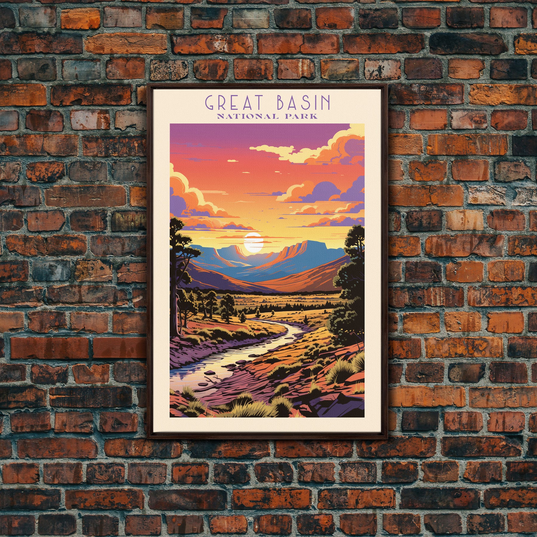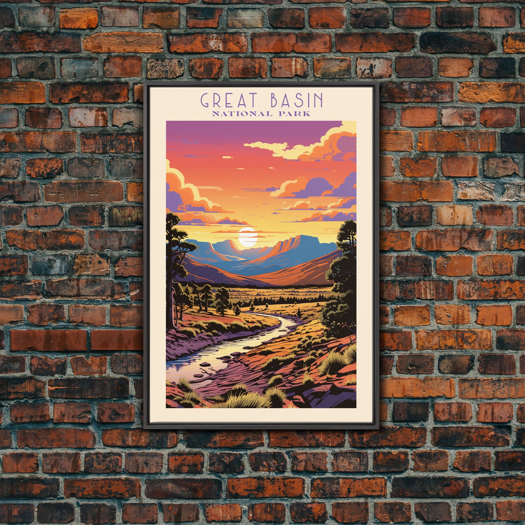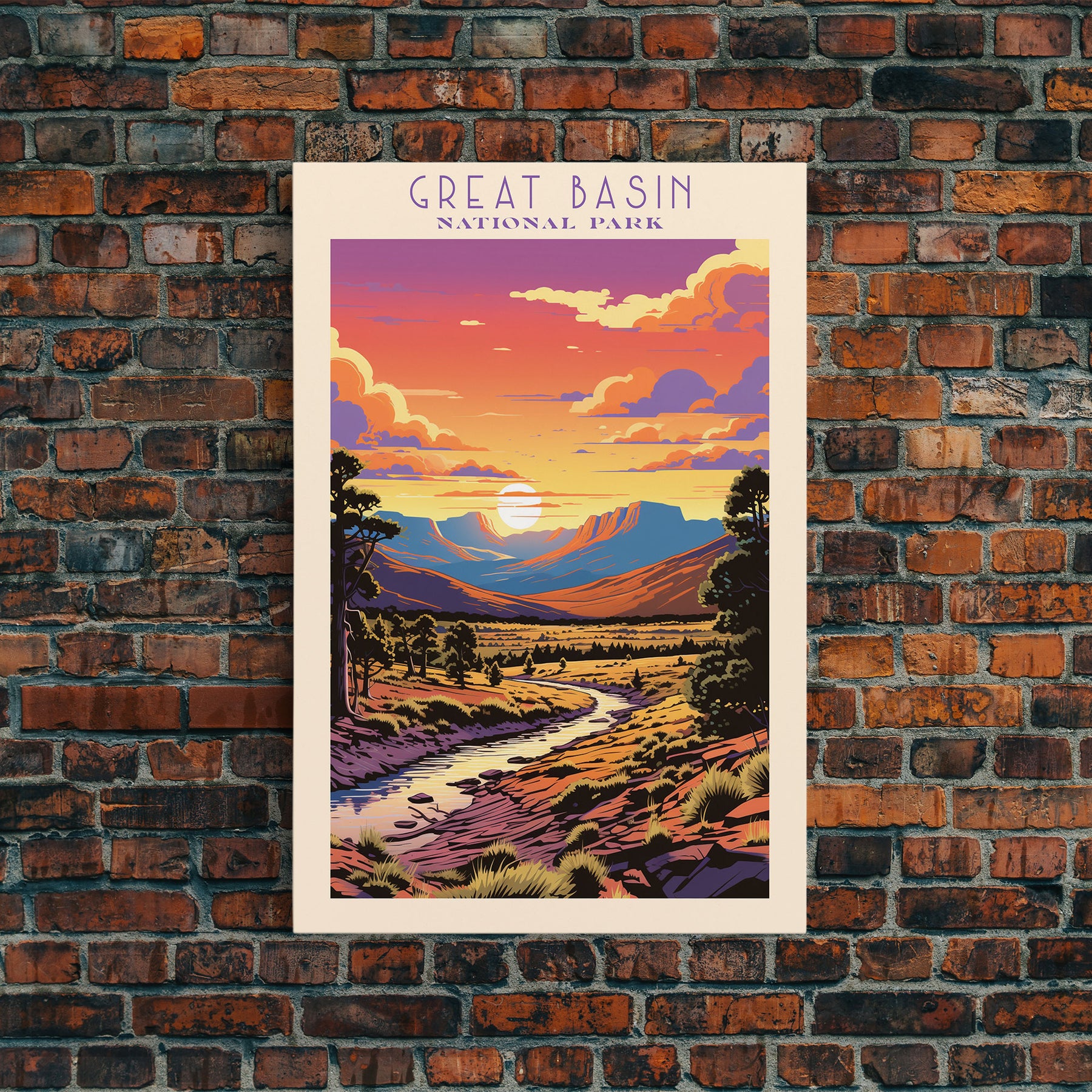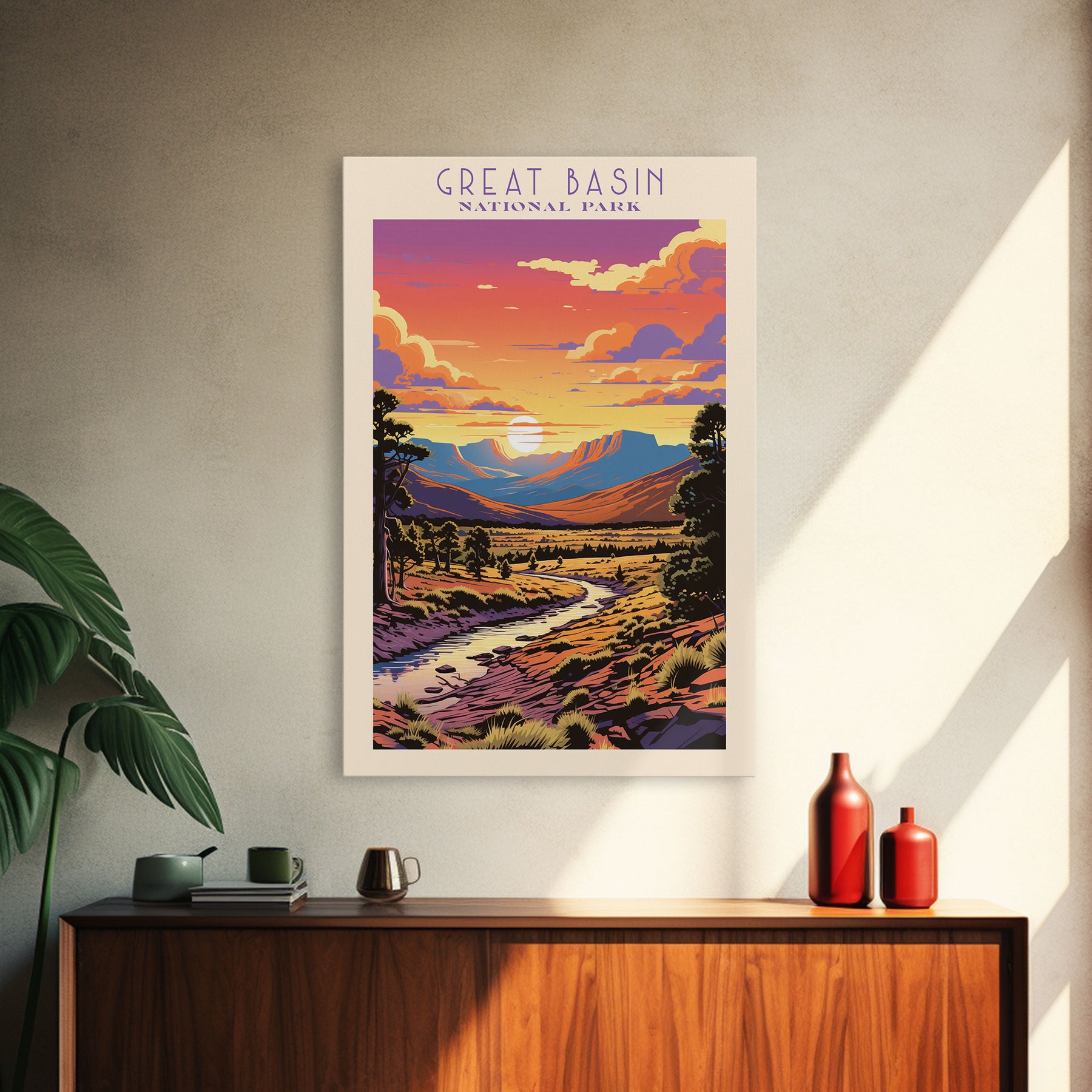 Great Basin National Park Nevada Travel Art, National Park Print, Minimalist Travel Art, Midcentury Modern Style Landscape Painting