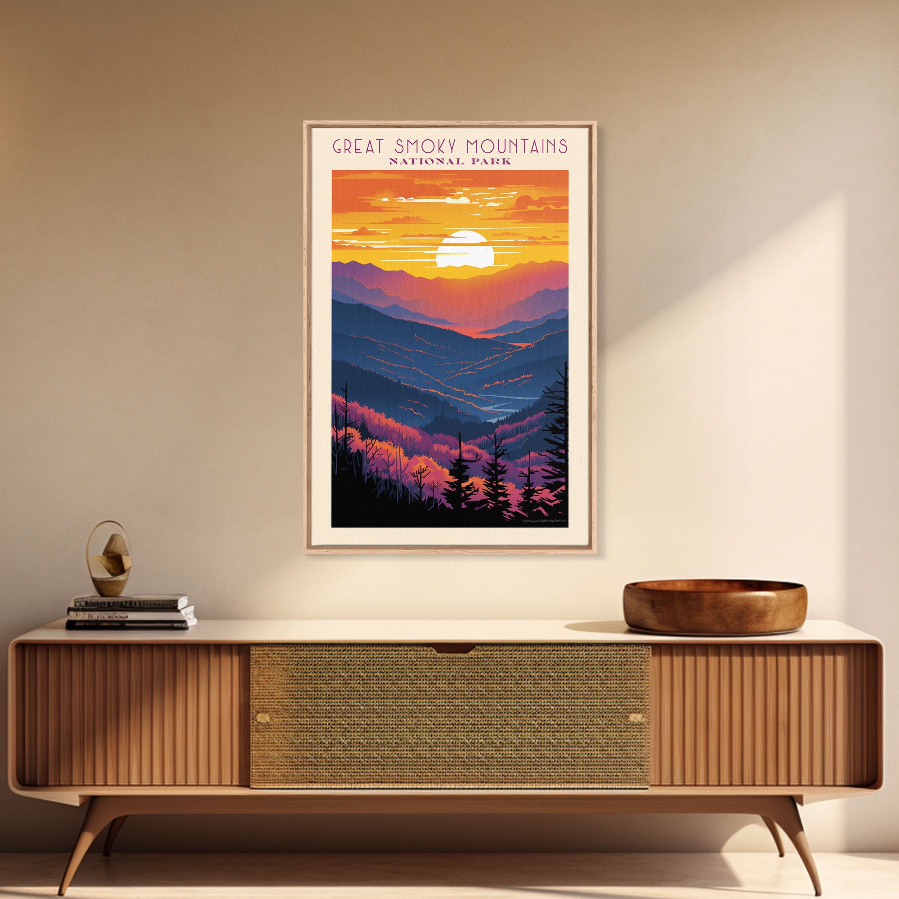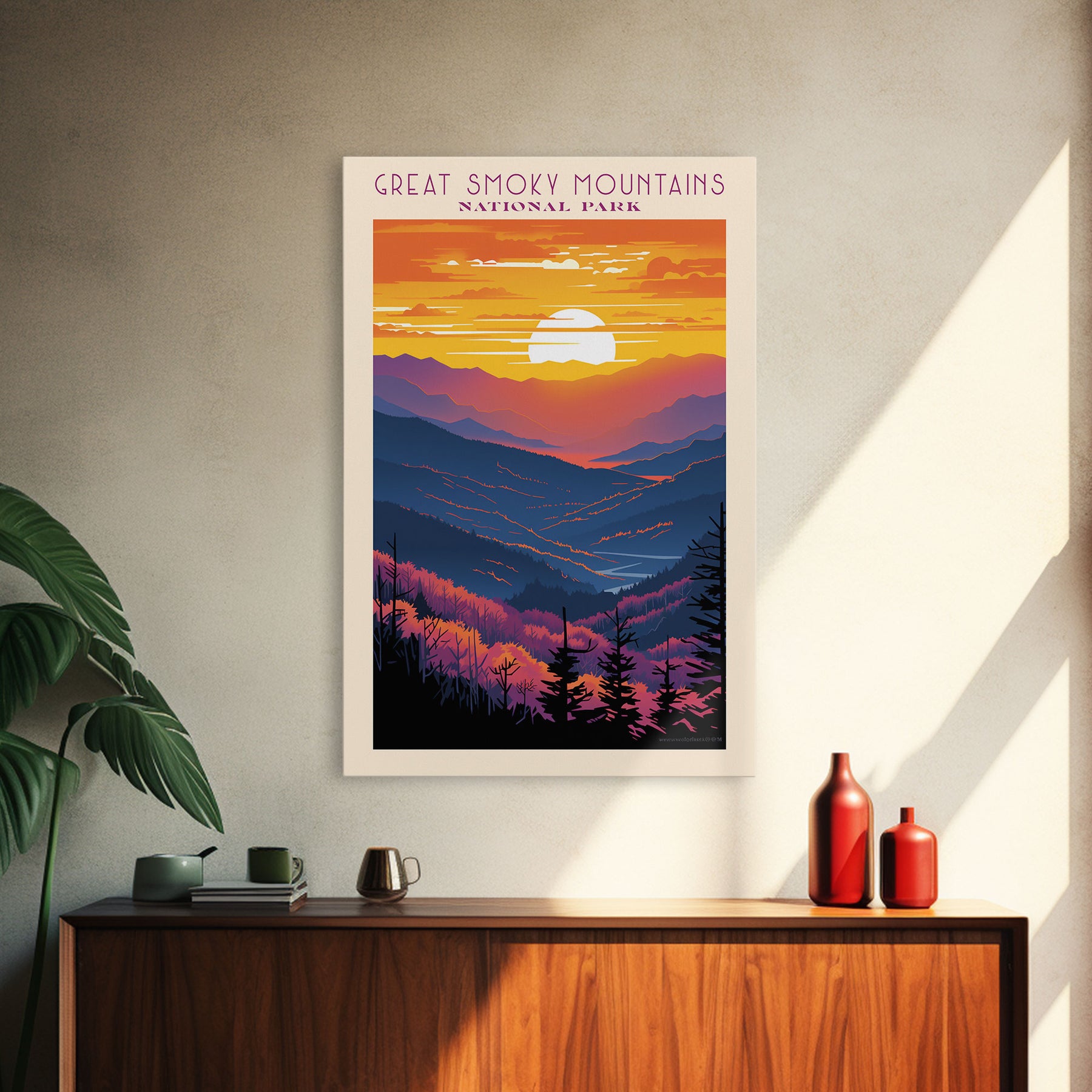 Great Smoky Mountains National Park Travel Poster Art, Canvas Print Wall Art, Tennesee Travel Art, Midcentury Modern Travel Decor, Wall Art