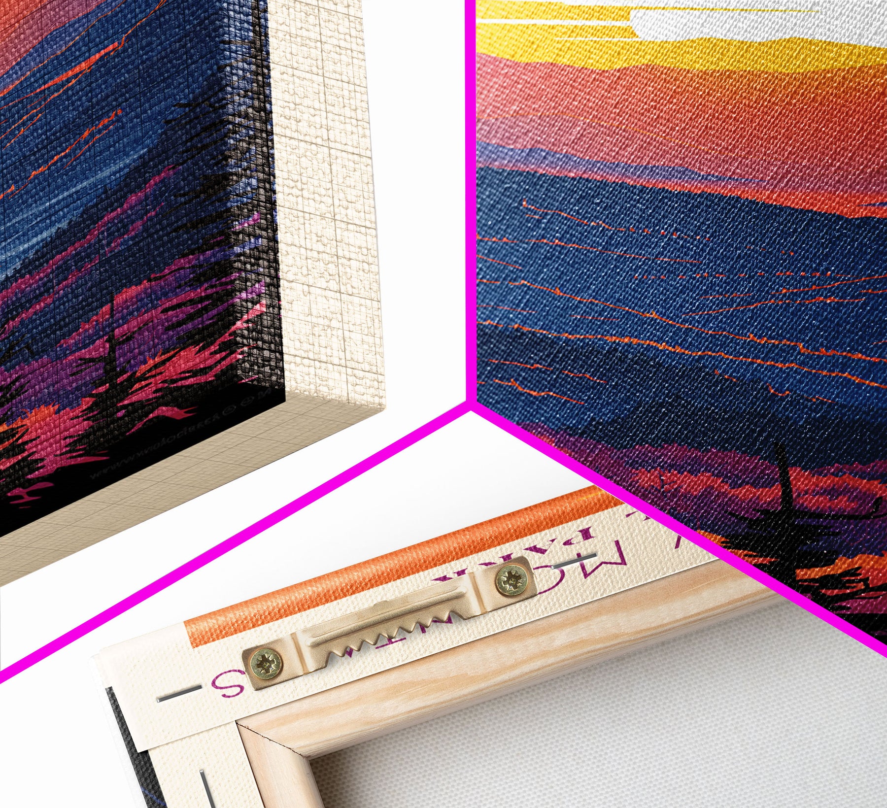 Hello and thank you for taking the time to view our modern high quality giclée artwork! We offer both posters and stretched canvas prints. Our posters are printed on Ultra Matte 60 lb / 230 GSM high quality photo paper, with a thickness of 10 mil. Our canvases are printed on museum grade 350 GSM canvas material with ECO friendly archival grade ink, then hand stretched and stapled over premium, FSC certified and shrink resistant frames. Designed and built to last a lifetime.