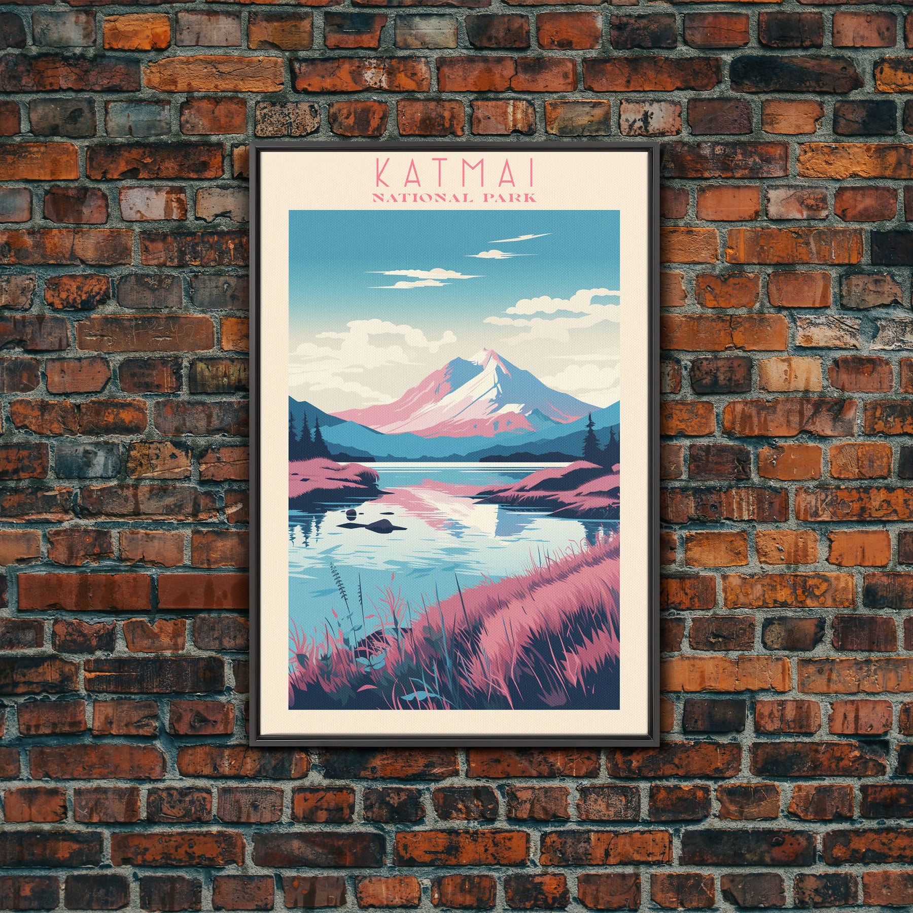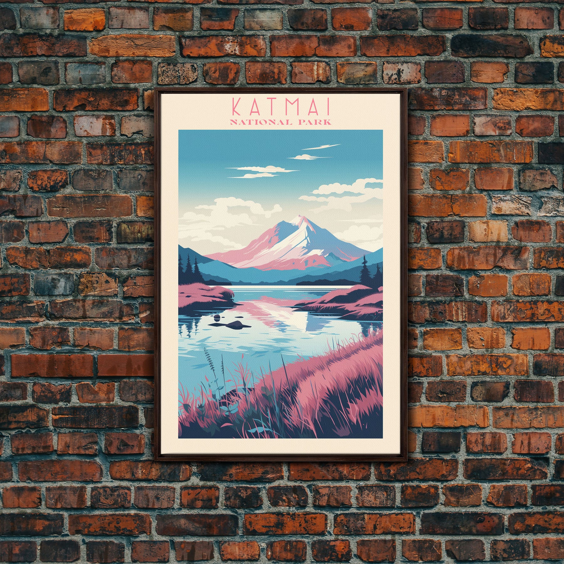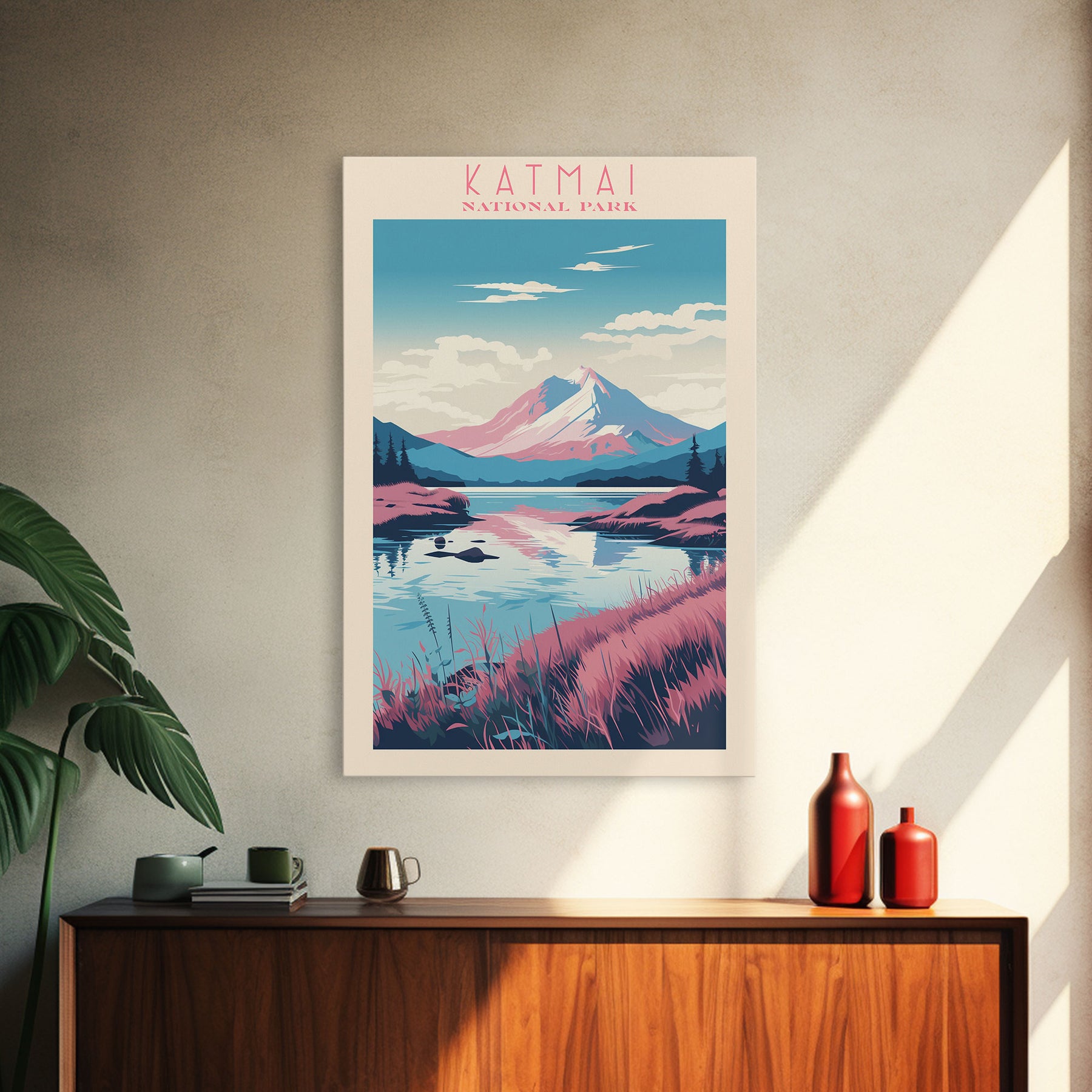 Katmai National Park Alaska Travel Art, National Park Print, Minimalist Travel Art, Midcentury Modern Style Landscape Painting