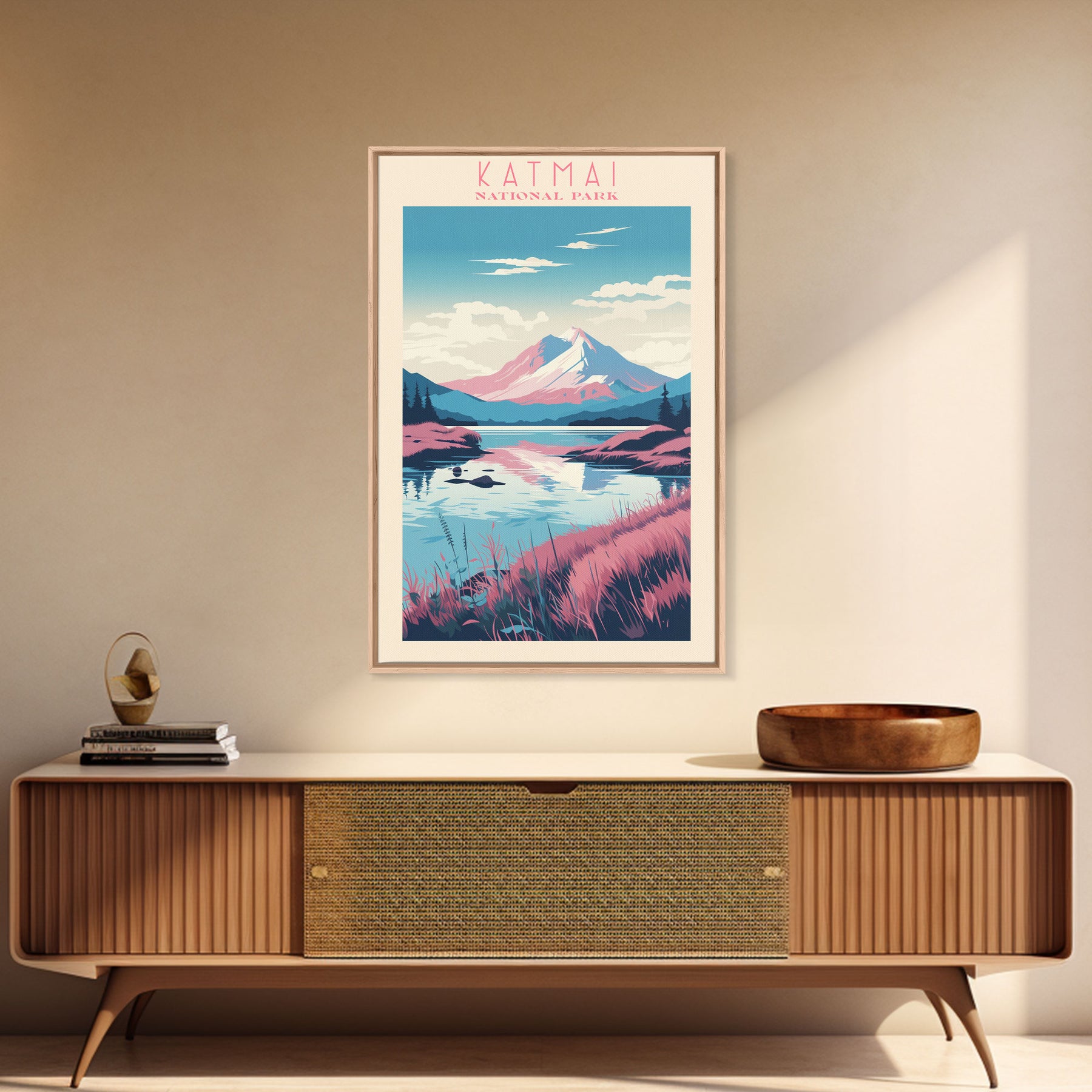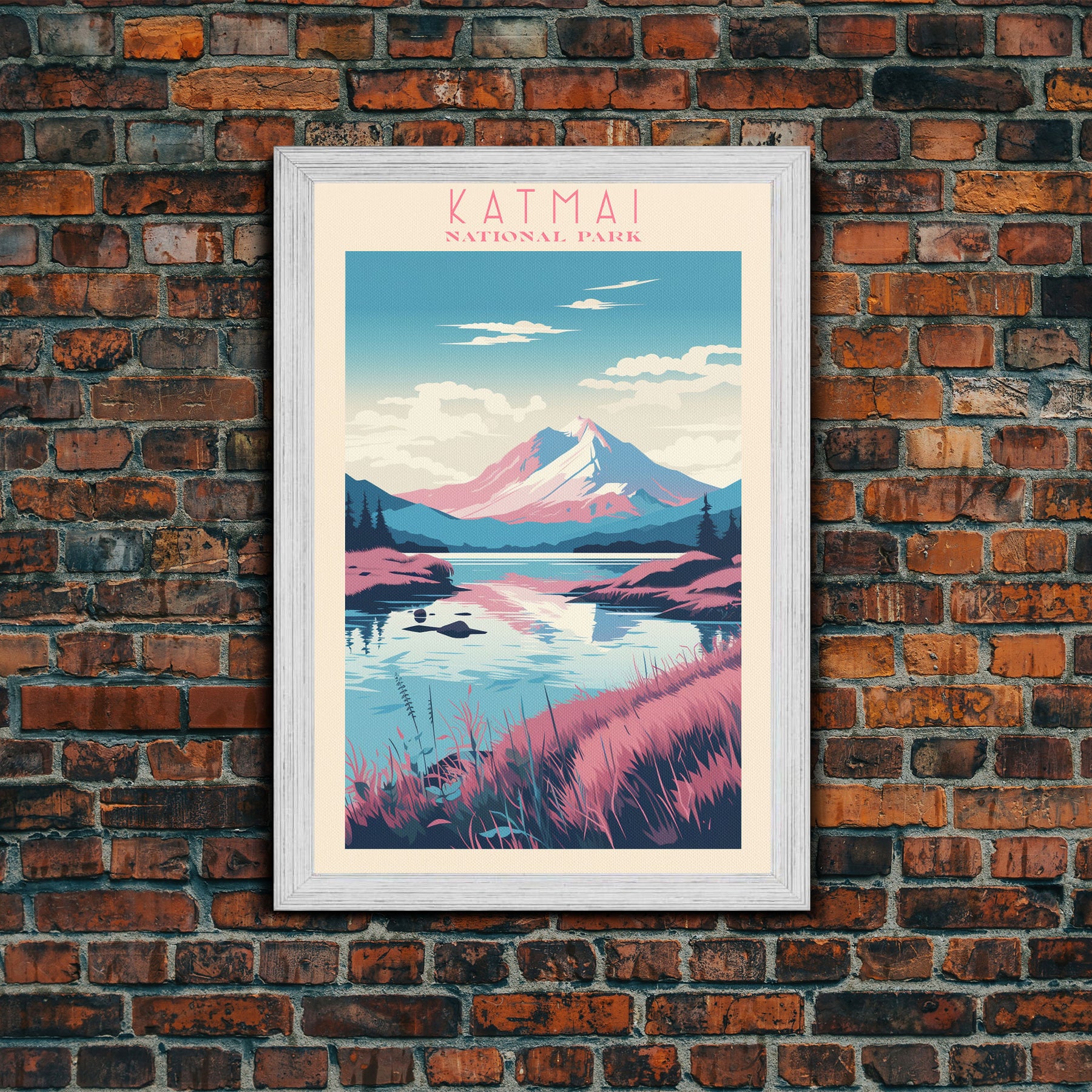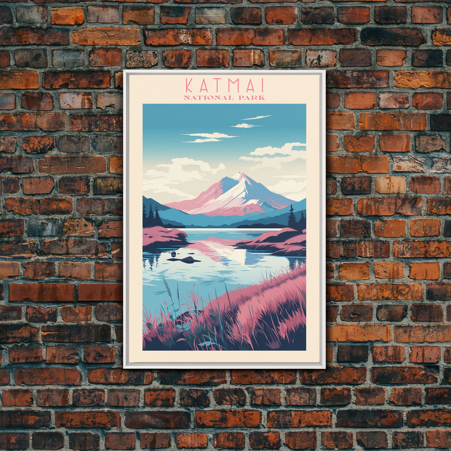 Katmai National Park Alaska Travel Art, National Park Print, Minimalist Travel Art, Midcentury Modern Style Landscape Painting