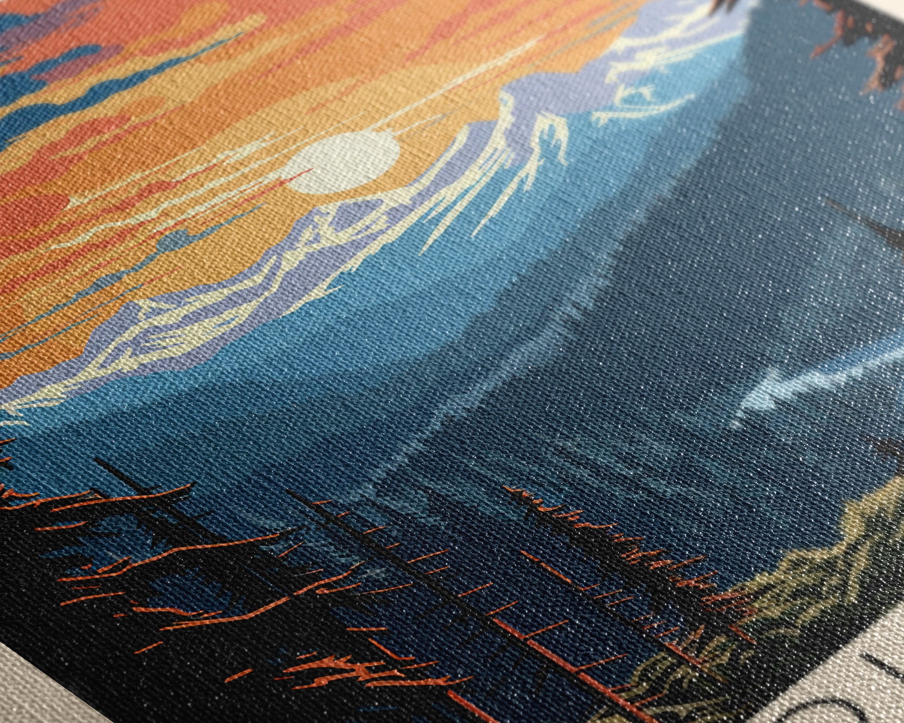 Hello and thank you for taking the time to view our modern high quality giclée artwork! Printed on extremely durable 350 GSM canvas material with ECO friendly archival grade ink, then hand stretched and stapled over premium, FSC certified and shrink resistant frames. Designed and built to last a lifetime.
