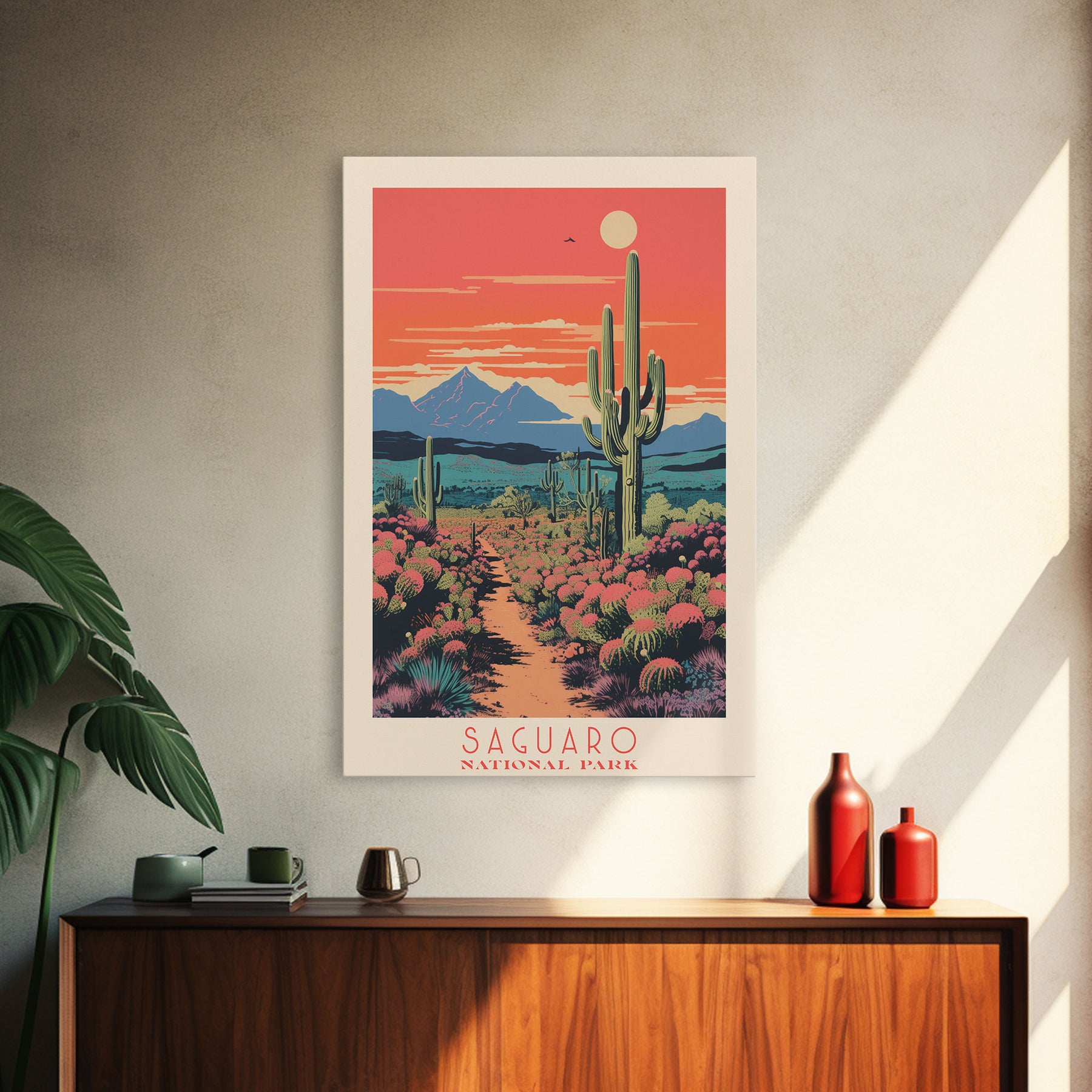Saguaro National Park Arizona Travel Art, National Park Print, Minimalist Travel Art, Midcentury Modern Style Landscape Painting
