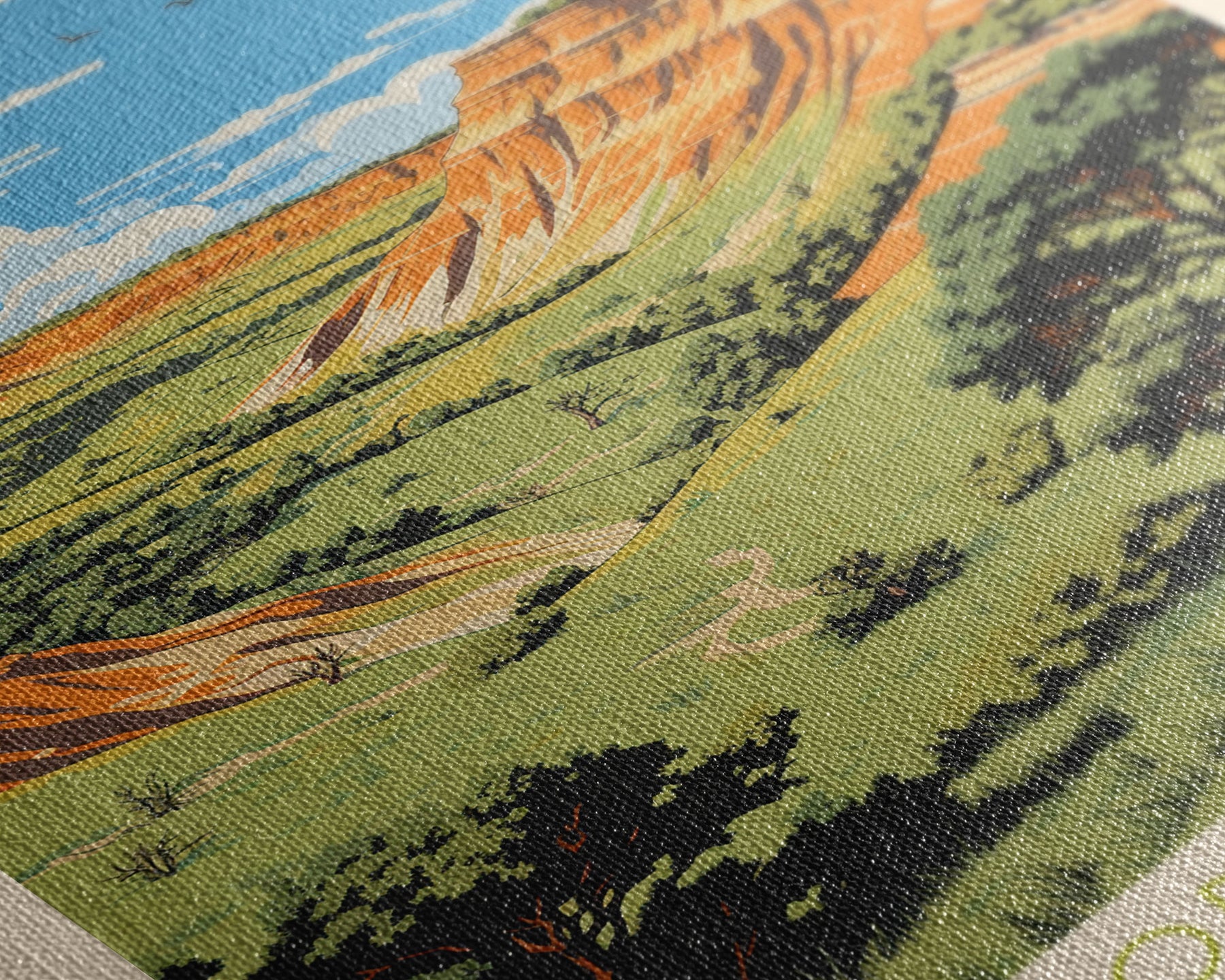 Most of our canvases are made in the USA, with the exception of canvases ordered with the light oak unstained frames, and any large canvases (24x48, 30x60, 16x48 and 20x60) ordered WITH a frame. These are temporarily made in and shipped from Europe, while we try to find a more consistent supplier in the USA.