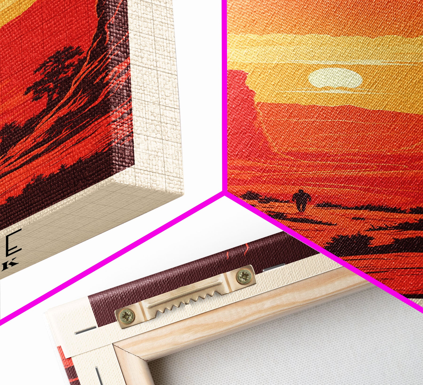 Hello and thank you for taking the time to view our modern high quality giclée artwork! Printed on extremely durable 350 GSM canvas material with ECO friendly archival grade ink, then hand stretched and stapled over premium, FSC certified and shrink resistant frames. Designed and built to last a lifetime.