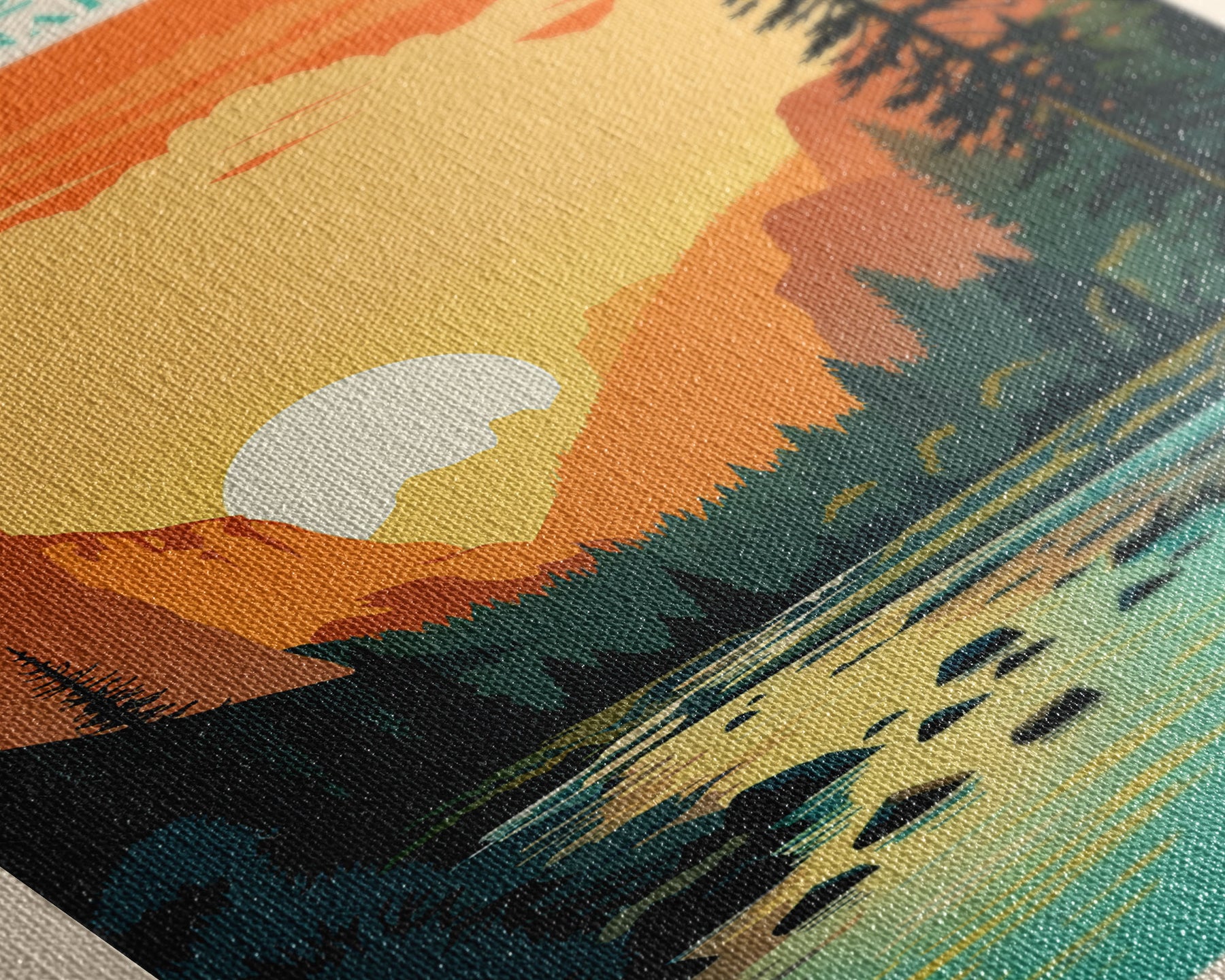 Most of our canvases are made in the USA, with the exception of canvases ordered with the light oak unstained frames, and any large canvases (24x48, 30x60, 16x48 and 20x60) ordered WITH a frame. These are temporarily made in and shipped from Europe, while we try to find a more consistent supplier in the USA.