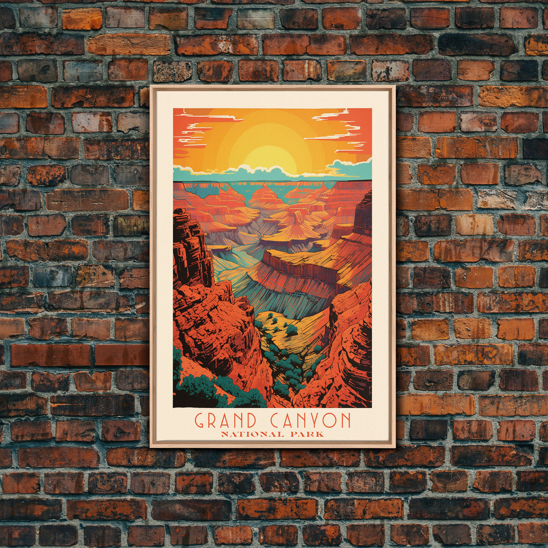 Grand Canyon National Park Travel Poster Art, Canvas Print Wall Art, Arizona Travel Art, Midcentury Modern Travel Decor, MCM Wall Art