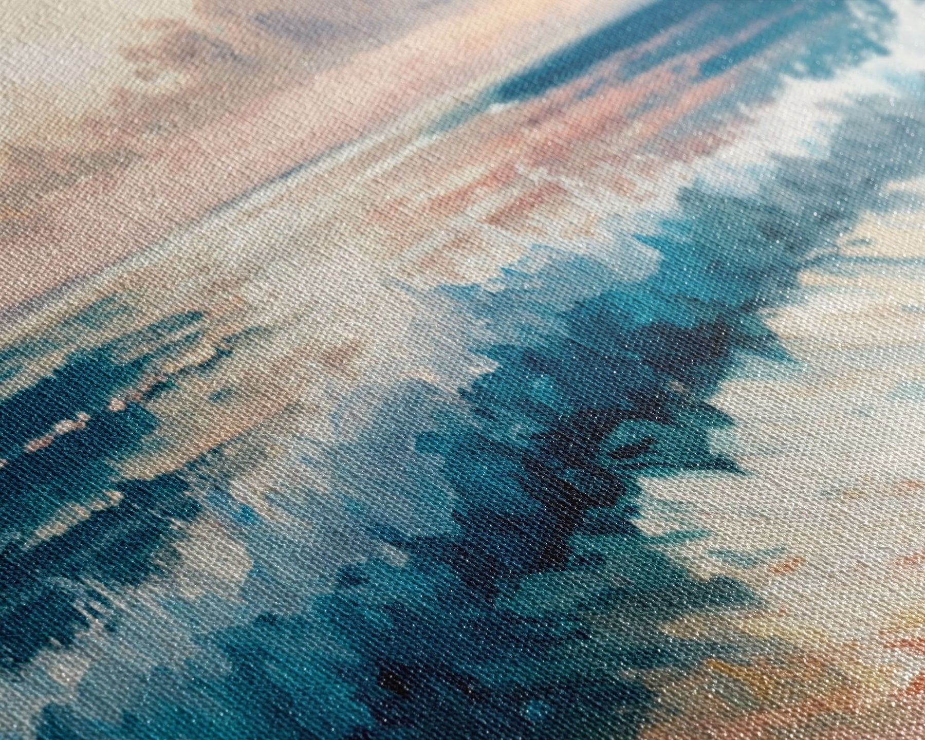 Most of our canvases are made in the USA, with the exception of canvases ordered with the light oak unstained frames, and any large canvases (24x48, 30x60, 16x48 and 20x60) ordered WITH a frame. These are temporarily made in and shipped from Europe, while we try to find a more consistent supplier in the USA.