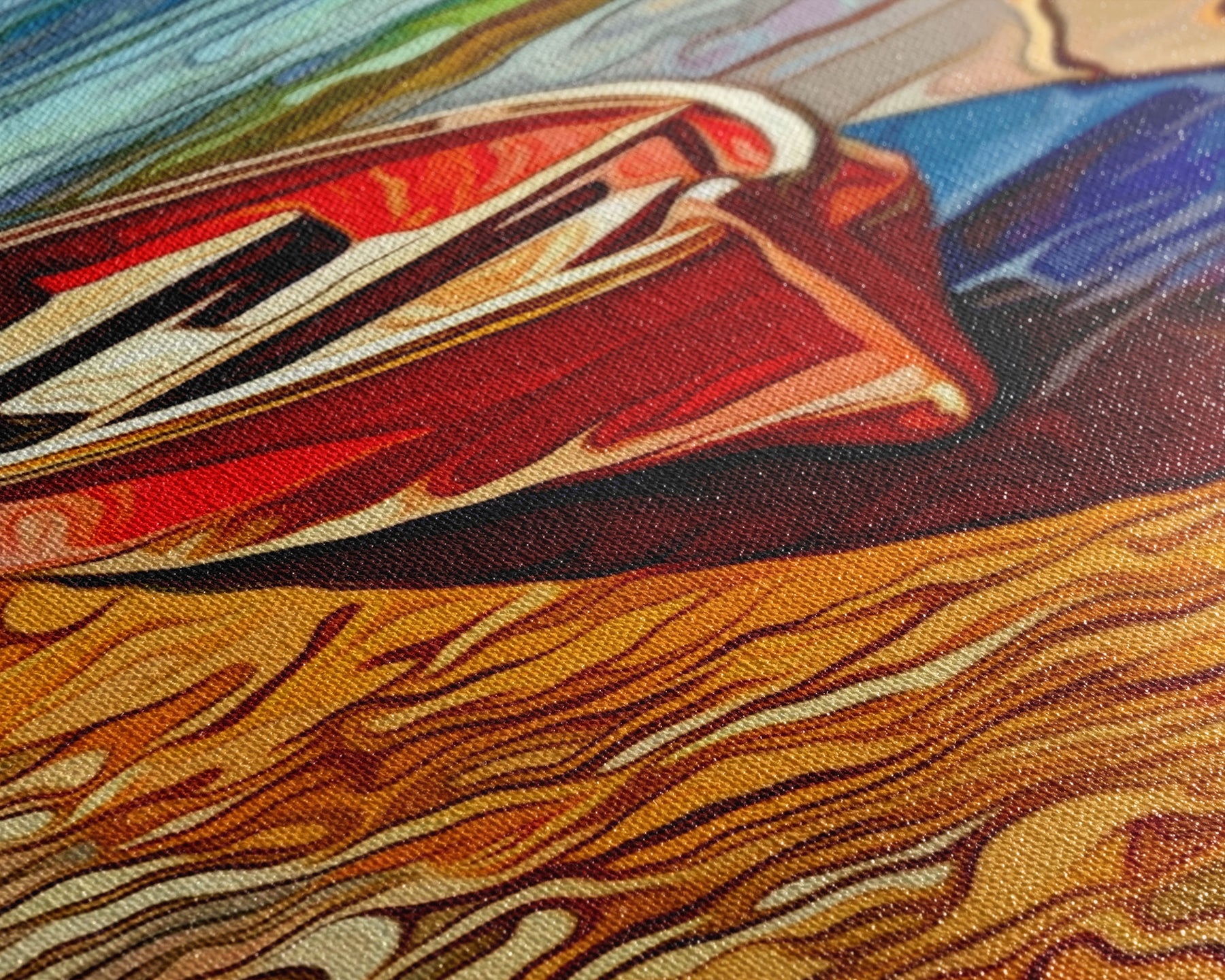 Most of our canvases are made in the USA, with the exception of canvases ordered with the light oak unstained frames, and any large canvases (24x48, 30x60, 16x48 and 20x60) ordered WITH a frame. These are temporarily made in and shipped from Europe, while we try to find a more consistent supplier in the USA.