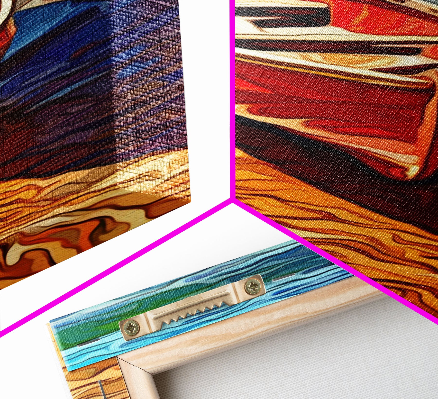 *Optional frames add a total of 1.5 inches to each dimension, for example a 10x20 canvas with a frame will be 11.5 by 21.5 inches total. All framed canvas are 1.5" total depth.